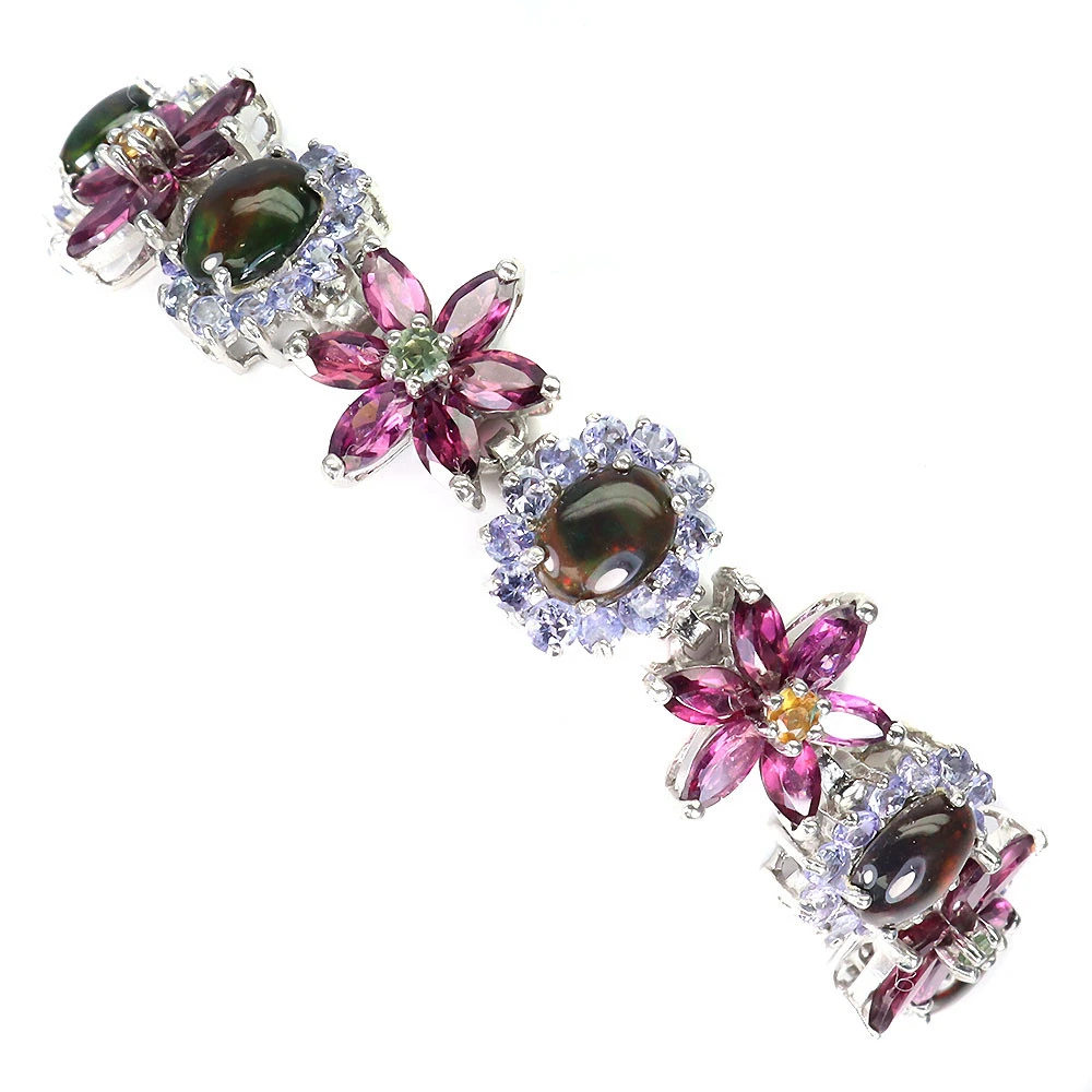 Valentine 925 Silver Bracelet Oval Black Opal Sapphire Rhodolite Gemstone Jewelry PRODUCT ID BA2307010196 PRODUCT TYPE Bracelet TYPE OF METAL 925 Sterling Silver PLATE 14k White Gold Ring size/Length (inches) 7.5 MAIN STONE Black Opal OTHER GEMS Rhodolite Garnet, Sapphire, Tanzanite TOTAL weight 23.18 gram (total weight of silver + stone) DIMENSION * STONE 2.5 TO 8.0 X 6.0 MM. * TOTAL LENGTH 7.5 INCHES. * FACE BRACELET 160.0 X 14.0 MM. MAIN STONE SHAPE Oval Cabochon MAIN STONE COLOR Hot Rainbow Luster CLARITY/GRADE If LUSTER Amazing TREATMENT Clarity Enhanced ORIGIN Ethiopia HARDNESS 5 IF very high quality & Free from inclushions. VVS high quality with very slight inclushions. SI1 Good Quality with slight inclusions visible to the naked eye. SI2 include becoming prominent to the eye. I included. "Delivering excellent with eBay" we accept: PayPal payment which we prefer. FOR US BUYER >>>> PLEASE READ We are genuine seller from THAILAND. All products are originally 100% manufactured in THAILAND. Every items are 100% exported directly from THAILAND. However, we use shipping provider 'Webgistix' who is a US distributor. The items will be allocated from Webgistix's distribution office in Las Vegas, NV by USPS. Please understand that the tracking status will show starting from Las Vegas when you track the items. Feel free to ask for more details. We ship item(s) from Thailand to Worldwide in 24 hr. ( in working day ) after the payment was cleared. $10 - flat rate for a registered airmail, takes 20 - 40 days delivery. Thailand Post stops the service to Latvia, Lithuania, Malta, Moldova, Estonia, Georgia and Israel. Fedex cost up on destination with insure and online tracking. Destinations Asia NORTH AMERICA, CANADA EUROPE (WEST) EUROPE (EAST), SCANDINAVIA, MIDDLE EAST SOUTH AMERICA, AFRICA FEDEX EXPRESS (minimum) $70 $70 $70 $80 $80 Fedex rate will be charged by weight and destination area. A combine package is limited at 10 items within 10 days. Do not send your payment directly, just contact us to request total when you finish bidding (ebay cannot automatic combine items). Any single item weigh over 300ct is not eligible to combine. Buy over US $999 in one payment (10 items within 10days), Get Free FedEx shipment. TAX/CUSTOM: Custom fee is out of seller control. Buyer is responsible for the cost at arrived. Please give us an opportunity when you have questions with item received. Buyer can make agreement on discount or return the shipping in case of damage item. Seller is located in Thailand. So please contact seller for the instruction before return any item. Your communication is most important to solve the problem. International buyers note: Import duties, taxes, and charges are not included in the item price. These charges are the buyer's responsibility. Please check with your country's customs office to determine what these additional costs will be prior to bidding/buying.