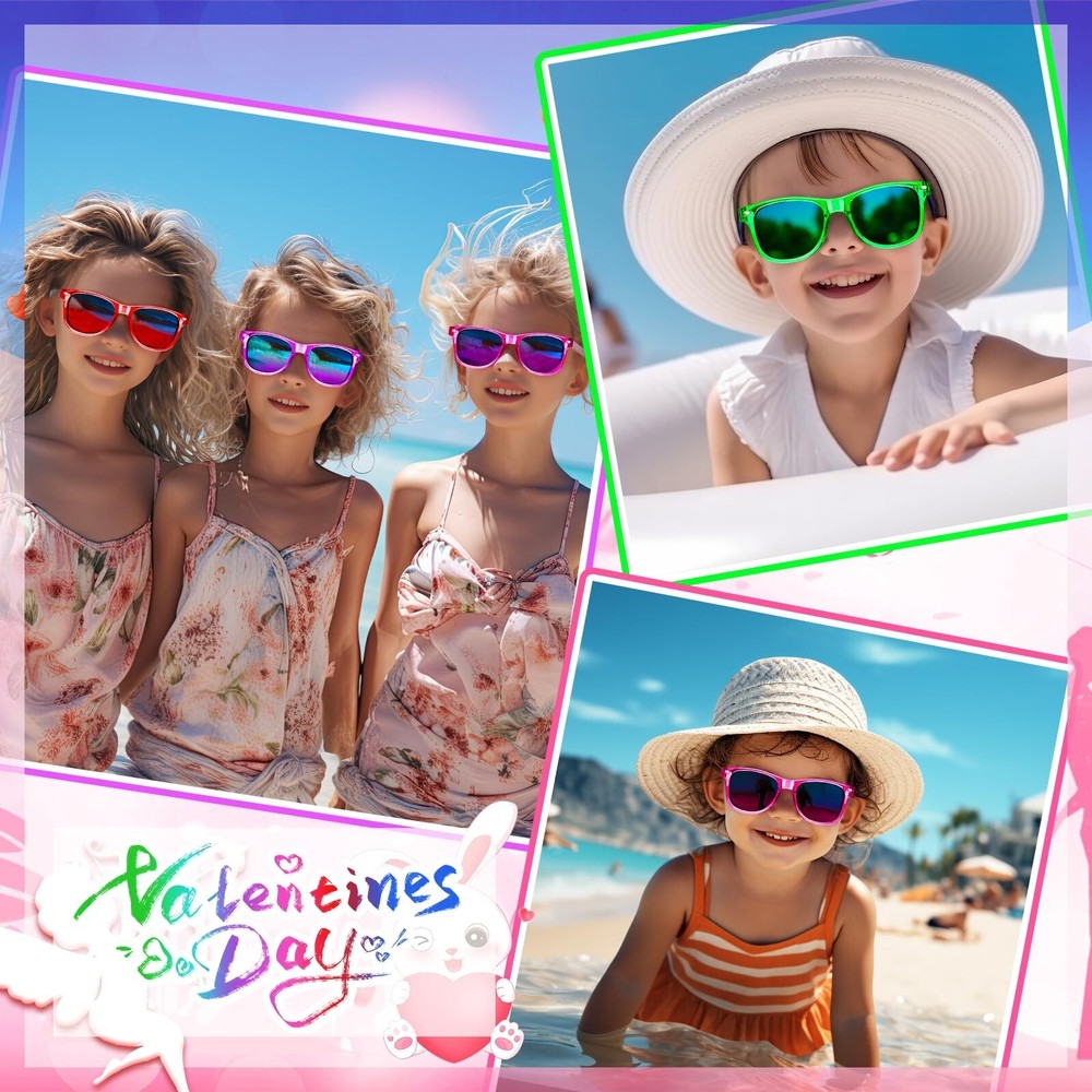 Valentine Cards for Kids Classroom with Kids Sunglasses Party Favors ,Kids Sunglasses Party Favor with Valentines Day Cards, Party Gifts for Kids Classroom, Party Favors Exchange Cards for Kids Product Details Style: 12PCS Kids Sunglasses with Valentines Day Cards Brand: Jallgedk MPN: 2024-12YJ-XC-WYD-TM UPC: 635393426467 EAN: 0635393426467 Color: Multicolor Brand: Jallgedk Unit Count: 12.0 Count Item dimensions L x W x H: 3 x 1.2 x 3 inches Occasion: Valentine's Day Manufacturer: Jallgedk UPC: 635393426467 Age Range (Description): Kid Product Dimensions: 3 x 1.2 x 3 inches Item Weight: 7.8 ounces Country of Origin: China Item model number: 2024-12YJ-XC-WYD-TM Manufacturer recommended age: 3 years and up Department: kids Summer Party Favors for Kids: What makes our kids sunglasses bulk different from other sunglasses for kids is our frame is translucent and bright colors which are very attractive. Each of toddler sunglasses bulk will show different colors in different lights and angles. In the sunlight, the frames of the kids glasses look like they are sparkling. And kids will be the most dazzling! Each pair of bulk sunglasses has gorgeous lenses. Receiving these kids will be over the moon Customized Design for Kids Aged 3-8: The frame of each pair measures 5" W x 1 3/5" H x 5 L. Sized specifically for kids ages 3-8. These neon sunglasses for kids are made from lightweight materials with high-quality lenses, ensuring children feel comfortable wearing them without any pressure or discomfort. And the edge of our kids sunglasses bulk is smooth and light, and won't hurt kids' skin or have any burden UV 400 Eye Protection and Polarized Lens: Our bulk kids sunglasses for kids with UV 400 protected lenses with added polarization for eliminating glare which can lighten the fatigue state of your kids eyes, at the same time, kids sunglasses can maintain clear vision and natural color. Perfect for the summer beach party, pool party, and outdoor activities High Quality and Safety Material: The kids party sunglasses are made of comfortable and sturdy polypropylene material, durable and light in weight. It is not like some other sunglasses for kids will burden the nose and ears. The frame is so comfortable that you can't even notice it is on your face. Perfect for kids to have some outdoor activities. It won't limit kids' play and will protect their eyes from the dazzling sunlight Best Gift Idea: Still struggling with what to get for Easter gifts, classroom exchange gifts, birthday return gifts, class prize? Neon glasses party supplies are great for beach pool party, graduation party, giveaway carnival prize, goody bag stuffers, holiday gift, party favors for kids 3-8. Tuck these kids sunglasses bulk into treat boxes, goodie bags, or give them out as party favors or rewards, the kids will absolutely love them