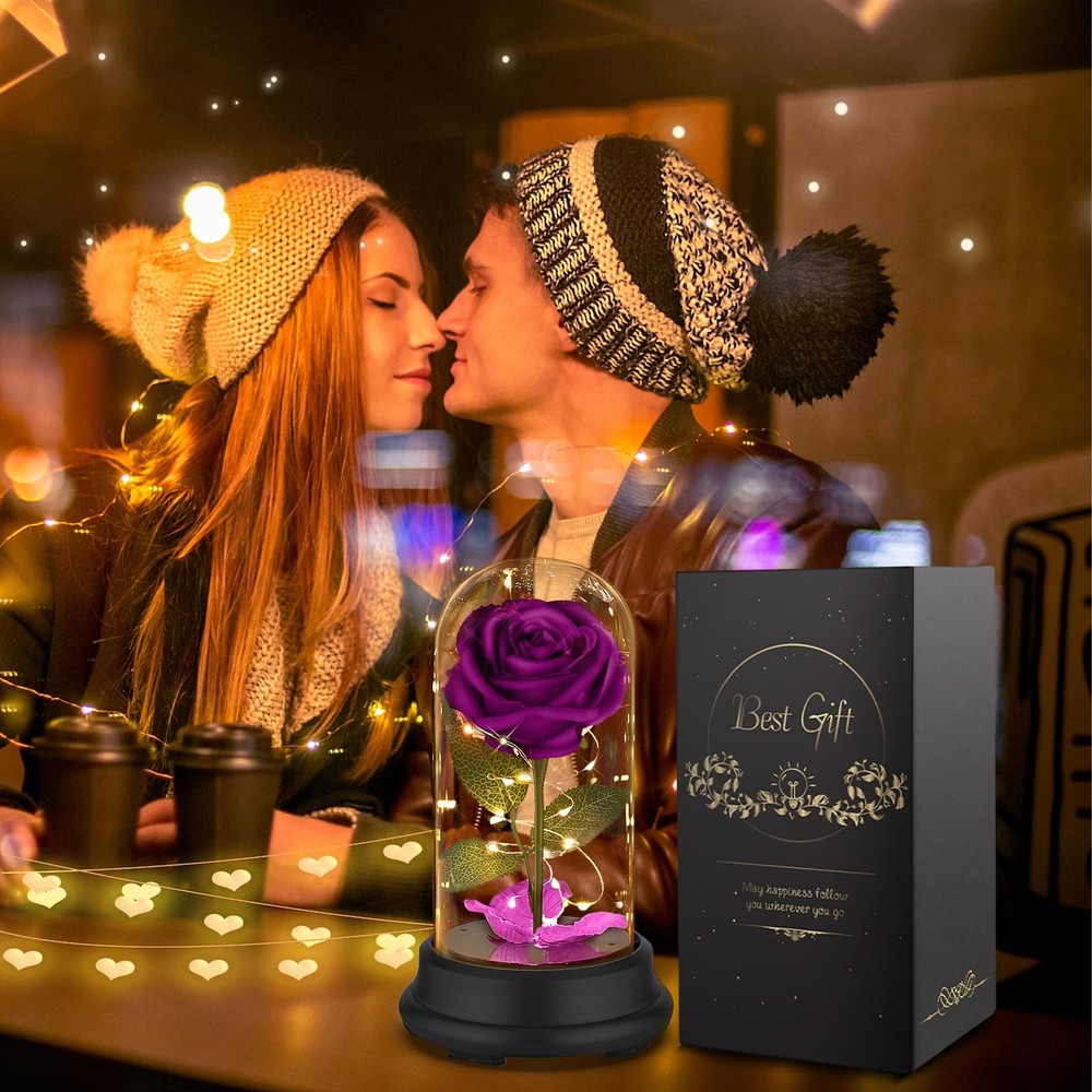 Birthday Gifts For Women:Elegant and charming silk rose with led light strips coiled around it, paired with romantic light and falling red rose petals, blooming vividly under the crystal dome.Preserved rose is a symbol of long-lasting love, friendship and beauty. Nothing is sweeter than infinity rose. Give her a surprise that represents your endless love and blessings to her. 【Birthday Gifts For Women】Elegant and charming silk rose with led light strips coiled around it, paired with romantic light and falling red rose petals, blooming vividly under the crystal dome.Preserved rose is a symbol of long-lasting love, friendship and beauty. Nothing is sweeter than infinity rose. Give her a surprise that represents your endless love and blessings to her. 【Rose Flower Gifts for Women】Size: 9''*4.9''. The rose made of soft silk is vivid and realistic. Premium copper wire LED string lights are waterproof and flexible to create different shapes. Highly transparent plastic dome shows a better visual effect while not worrying about breaking. The lamp shade fixed on the base can be removed for cleaning and DIY. switch on the side to adjust the warm white and color two light modes. Flower lamp is powered by 3 * AAA batteries or Micro US two ways to power, more convenient. 【Eternal Mom Gifts】The rose tree lamp is packaged exquisitely in a luxury portable gift box, which is a stunning gift. The never fading rose not only symbolizes eternal love, but also a wonderful blessing. As a mother's day gifts, valentine's day gifts, anniversary gifts, graduation gifts, housewarming gifts and Christmas gifts for mother, grandmother, girlfriend, wife, daughter, friend, etc. Give this gorgeous gift now! 【Rose Flower Gifts for Women】The roses are pretty and cozy under the light, as home decoration or ambient light in the day and night, beautiful and practical. Bring romantic mood to your party, mother's day, anniversary, birthday party, proposal, engagement ceremony, wedding, candlelight dinner. Also as a lovely night light to dress up your bedroom and accompany you to sleep. Place in your living room, office, desk, cabinet, etc. adding glory to your life. 【Womens Gifts Idea for Her Day Holiday】You will get a unique Beauty and the Beast rose lamp with a gift box, data cable, and instructions. All assembled, no assembly required. Every product has been quality tested to ensure its high quality.