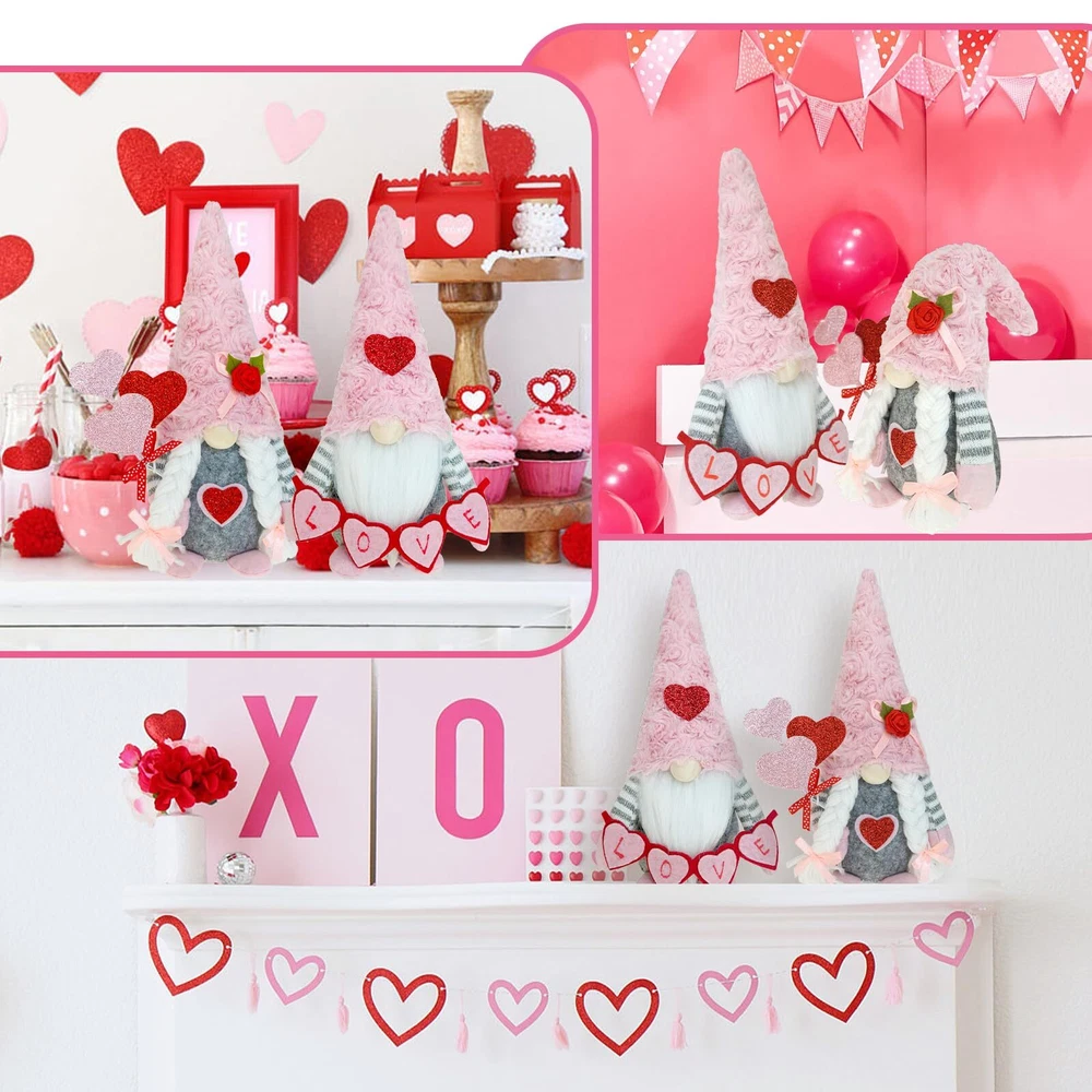 【Valentines Gnomes Plush】These adorable Mr. and Mrs.valentines gnomes plush with heart shaped balloon, cute LOVE sign in hands, hats decorated with lovely rose and red love heart,create the festive touch on valentines day. And Gnomes will bring us good luck, happiness, warmth and a little magical to your home decorations. 【Ideal Valentines Day Gift】Well crafted valentines gnomes plush is an ideal valentines day gifts for her. The adorable heart shaped balloon and red love heart are perfect for spreading valentines day happiness. Unique gnomes design are 100% match valentines day decor gnomes decorations for home tiered tray decor valentines table decorations. 【Valentines Day Decorations】The valentines gnomes will be an ideal addition to valentines day, LOVE sign and red rose decor can easily make your main centerpiece of your valentines day theme decorations, valentines table decorations. Perfect for displaying on a tiered tray, table, shelf or mantel, fireplace. Unique and cute style will bring family happiness. 【Premium Material & Handcrafted】The valentines day gnomes are made of plush and felt by professional artisans.The cute pink hats are made of Sunday Angora furry, very soft touch. 【Weighted Base & Poseable】 Each valentines gnomes decor has a built-in soft iron wire in hats. Flexiable hats make you can position it as you wish. Their bottom are plain to supoort stand on their own, and can be put on anywhere in the home. Fire place, mantle , kitchen, living room.