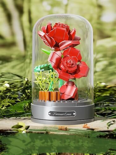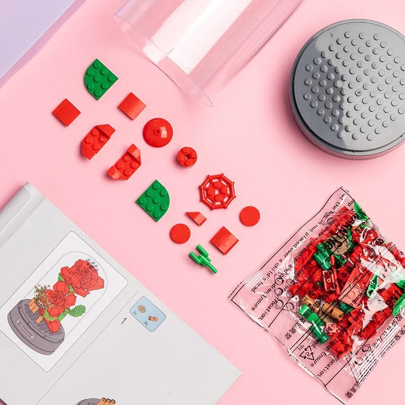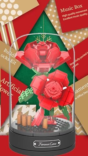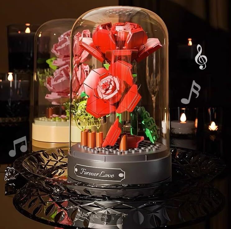 Valentine Red Rose Music Box with Building Blocks and Romantic Melody