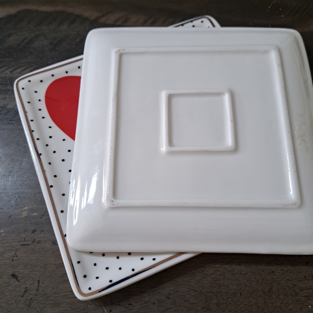 The Valentine Snack Plates Set of 2 features a romantic design with a red heart and the phrase "Hello Love", making it perfect for a Valentine's Day celebration. Made of porcelain, these 5.75"x5.75" plates are easy to care for and clean with a damp cloth amd warm water. The red and white color scheme adds a festive touch to any table setting, making them a charming addition to your holiday decor.