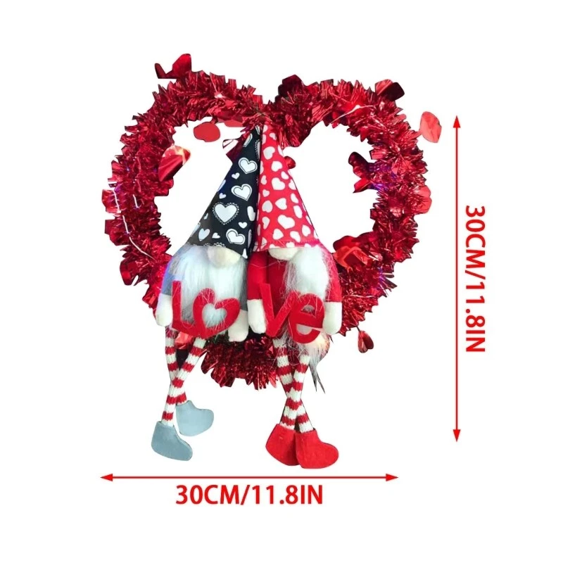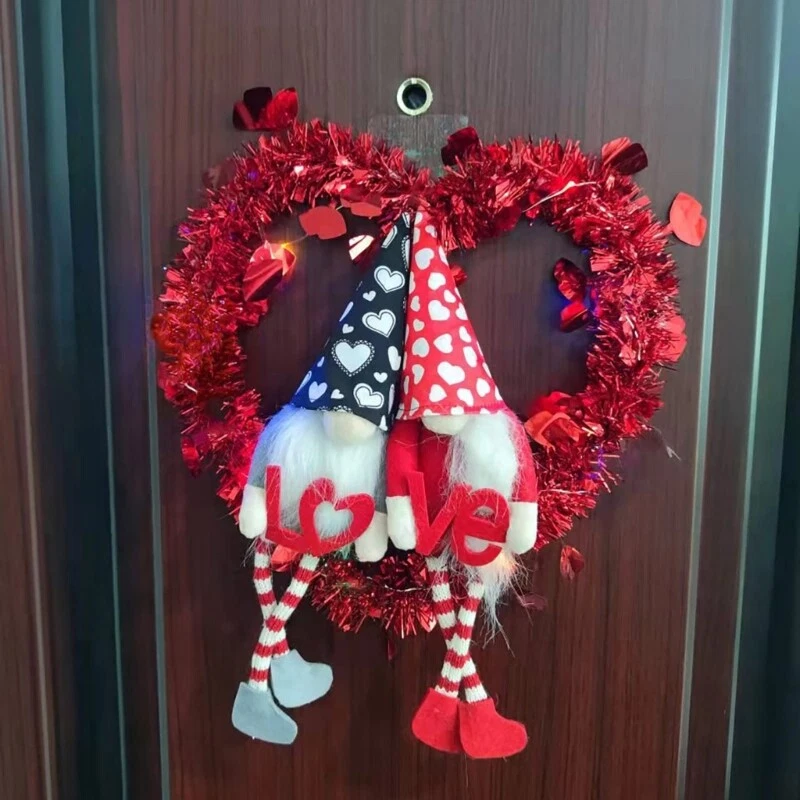 Valentine's Day Decorations Gnome Wreath for Front Door Wall Hanging Ornament Feature: Embellishment with gnome and heart shape, which will make you impressed with the front door wreath. for Creative accented with rich Valentine's Day will bring a different Festive focal point, this beautiful styling door wreath could be use during Valentine's Day, spring to add a holiday-themed accents, bring holiday cheer throughout your home. It can be used as both indoor and outdoor with its water-proof and for sun features, you may display this decorative wreath outside all day long without worry about changing weather conditions like rain, wind, sunshine. This wall wreath will sustain its bright colors and appearance for years. Specifications: Oxford Cloth Size: approx.30x30cm/11.81x11.81in Color: As pictures shown Power Supply: Button (included) Quantity: 1 Pc Note: Please allow 0-1cm error due to manual measurement. pls make sure you do not mind before you bid. Due to the difference between different monitors, the picture may not reflect the actual color of the item. Thank you! Package Includes: 1 x Hanging Wreath (other accessories in the picture is not included!)