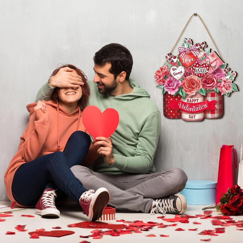 Quantity and Proper Size: the package comes with 1 piece of happy Valentine's day front door sign, which measures approx. 12 x 10.4 inch in size, suitable size to decorate your door without taking up much space, it's equipped with rope, and you just need to hang it on anywhere you want to decorate Valentine's Day Design: the happy Valentine's day door sign is clearly printed with phrase in elegant font, designed as 3 red pink vases brimming with rose and heart in bright Valentine's Day colors, which is full of Valentine elements and enhance a warm and rustic atmosphere Add Valentine's Day to Your Home: our Valentine's Day hanging sign features rustic and farmhouse style, can go well with most home decoration styles, you can hang it on your front door to add a sense of elegance and warmth to your home, easily create a beautiful scenery line and attract other's attention Add festival Color to Your Home: our hanging sign features rustic and farmhouse style, can go well with most home decoration styles, you can hang it on your front door to add a sense of elegance and warmth to your home, easily create a beautiful scenery line and attract other's attention Widely Applied: the Valentine's Day front door signs for home decor can be hung on walls and doors in living rooms, kitchens, bedrooms, hallways, gardens, yards and more, and the door sign can also as a gift to friends,enjoy the sweet of Valentine's Day