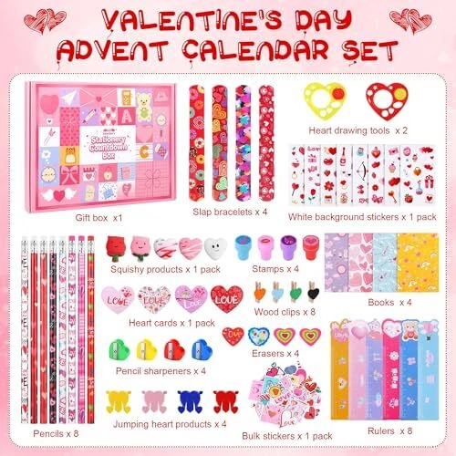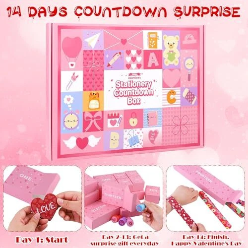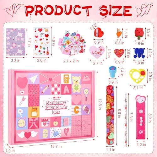 Return Policy Fast Delivery Trusted seller Valentine's Day Advent Calendar Set 2025 Valentine's Day Countdown 14 Styles Stationary 14 Days Advent Calendar Gift Box for Valentine Gifts Party Favors Product Description Super value pack: the Valentine's Day advent calendar set contains 14 packages, each package is labeled with a number symbolizing the 14 days from February 1 to Valentine's Day; open 1 package each day for a fun countdown and surprises 14 unique gifts: each countdown package contains a different kind of Valentine's Day favor, such as heart pencils, stickers, and jumping heart products; the variety of Valentine's Day gifts provides different surprises and is suitable for everyone Exquisite design: our advent calendar gift box is themed around Valentine's Day, featuring romantic shades of pink and red to fully showcase the festive atmosp; the warm and lovely design ideally matches students' preferences Interactive holiday experience: the creatively designed stationery in the set is suitable for holiday crafts and interactive play; whether doodling on the heart book or playing with Valentine's Day jumping heart products with friends, everyone will feel the festive atmosp and joy every day of the countdown Wide application: our Valentine's Day party favors are ideal for home, school and parties; the advent gift kit allows people to enjoy daily surprises leading up to Valentine's Day, adding a joyful atmosp to the holiday Shipping Returns Payment Shipping Shipping is FREE to all addresses other than APO/PO boxes in the lower 48 states. All our stock ships from US-based warehouses. Shipped via USPS or UPS (depending on location and package weight) Unless stated otherwise, all orders will ship within 24-72 hours of your payment being processed. Check our feedback to see the great reviews of FAST shipping we offer. Returns Seller does not accept returns Payment We currently accept payment via eBay managed payments only. Once payment is cleared, we will dispatch your shipment within 1-3 business days. Please refer to the "Shipping" tab for more information regarding shipping speed to your destination.