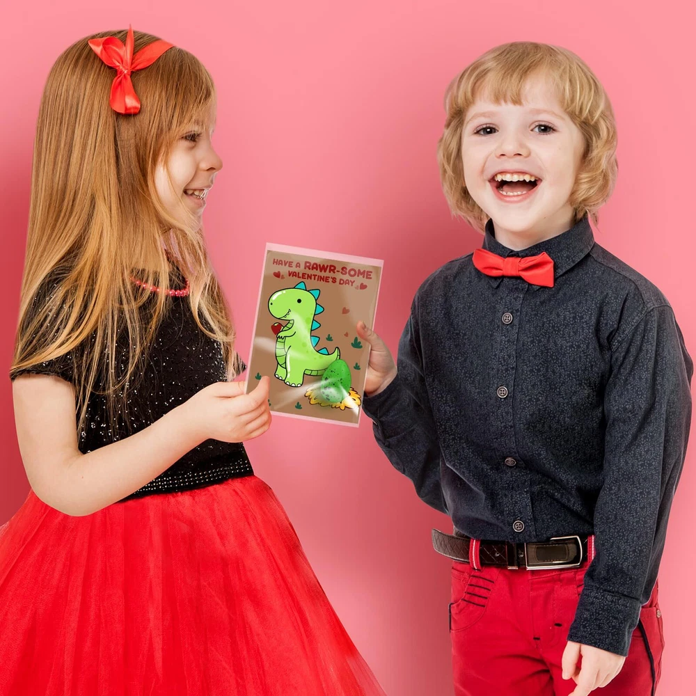 Great Value Kids Valentines Day Gifts-The Valentines boxes for kids come with 30 sets of 6 different dinosaur eggs, 30 cute Valentines day cards, 30 bags. Perfect Valentines day gifts for kids classroom, Valentines day cards for kids school exchange events, preschool bulk Valentines day favors for kids, kids Valentine gifts for boys girls 3 4 5 6 7 8 9 10+ years old. Gifts Idea-Kids Valentines day cards exchange is a traditional activity in classroom. Our kids Valentines gifts set includes 30 pcs 4 different designed cute Valentines cards, kids need to write [To] [From] who & blessing on the card, pick 1 dinosaur eggs, 1 write-completed card, and pack together in the bags, finally give the Valentines treat bags to classmates. Valentines gifts for kids & Valentines cards for kids classroom! Valentines Day Gifts for Kids Classroom: These valentine cards are unique for your boys and girls to give as valentines. They would be a hit for kids gift exchange, classroom prizes, valentines day party favors or any valentine’s day event. Our dinosaur eggs simply place the egg in a small cup of water for 12-48 hours. It will hatch and grow into a small dinosaur. The longer it's left in water, the larger it will grow! It can fully satisfy children's curiosity. Dinosaur valentines, Valentines gifts for kids classroom. Valentines Day Gift: These kids valentines day gifts for school are ideal for small gifts for kids, valentine classroom gifts, valentines day goodie bags,valentines day gifts kids, valentines day party favors for kids, birthday party gift bag set, valentines goodie bag stuffers, bulk gifts for kids, valentines day gifts for kids classroom & kids stocking stuffers etc.