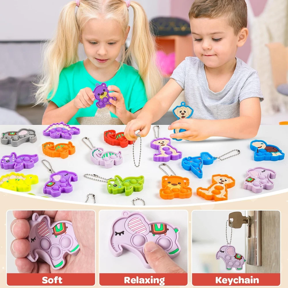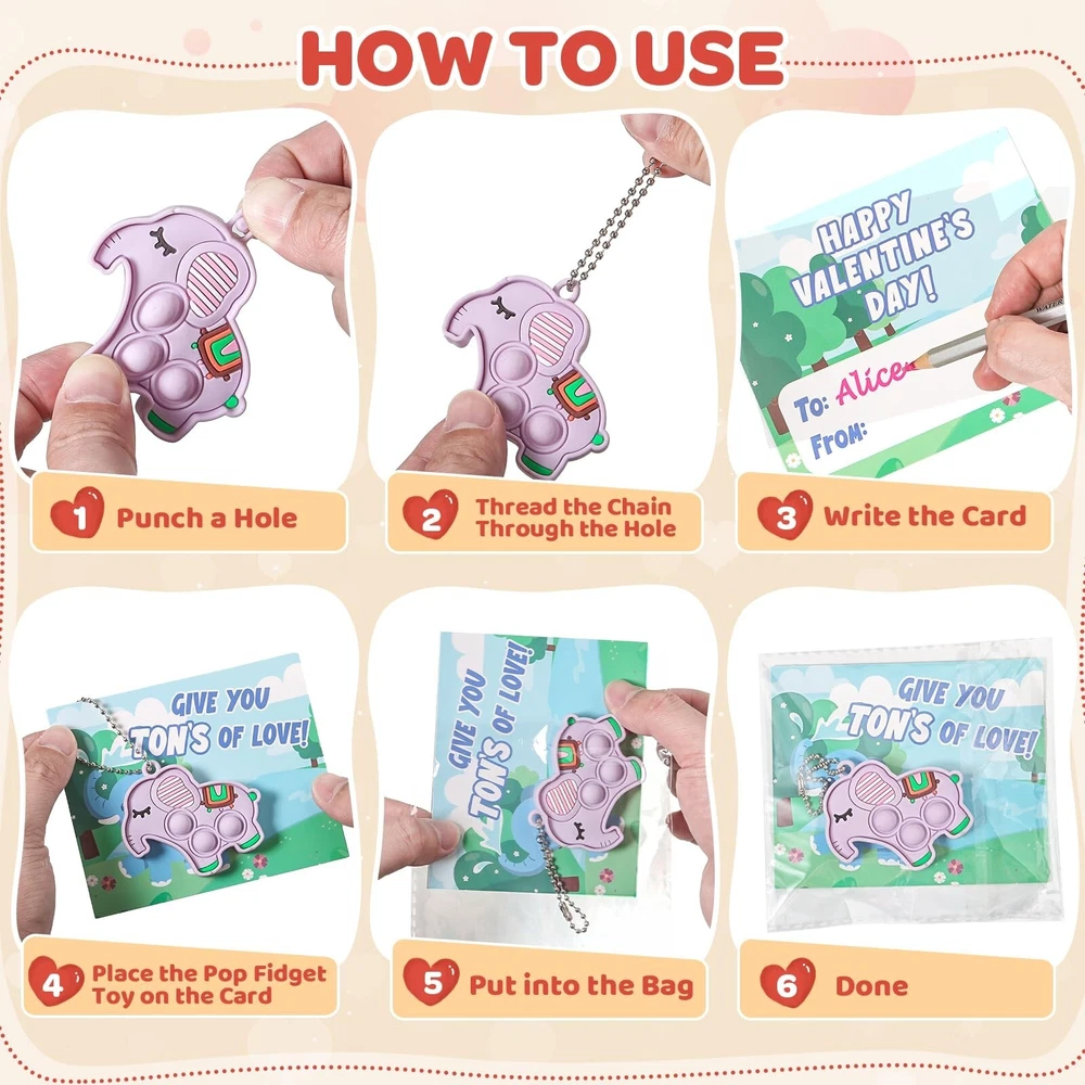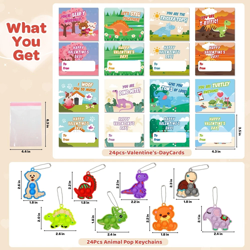 Valentines Day Cards for Kids, 24 Pack Pop Fidget Toys Keychains for Kids with Valentines Day Cards for Valentine School Party Favors for Kids Boys Girls, Kids Exchange Valentines Day Gifts Product Details Color: Colorful Material: Silicone Theme: Valentines Special Feature: Lightweight Included Components: 24pcs Keychains, 24pcs Valentines Day Gifts Cards Closure Type: Button Pattern: Animal Print, Heart Brand: AuroTops Item dimensions L x W x H: 0.1 x 0.1 x 0.1 inches Number of Pieces: 24 Style: Novelty Shape: Rectangular Product Dimensions: 0.1 x 0.1 x 0.1 inches Item Weight: 11.3 ounces Country of Origin: China Manufacturer recommended age: 36 months - 15 years Department: girls Manufacturer: AuroTops Super Value PackIdeal for children who adore animals, AuroTops Pop Fidget Toys come with 24pcs, each paired with a Valentine's Day card. Featuring 8 distinct animal shapes in 3 colors for each, they make wonderful classroom gifts for kids on Valentine's Day. Premium Silicone KeychainsThese mini pop fidget toys in animal shapes are ideal for classroom Valentine's Day exchanges. Their small size and lightweight design allow them to be easily carried in pockets, hung on keys, or attached to bags. They bring endless fun to kids, classmates, family, and friends. Beautiful-Designed Valentine's CardsOur set includes 24 colorful Valentine's cards, printed on sturdy paper to ensure durability. Customize each card with your personal message, making them perfect for classroom exchanges or as heartfelt gifts for your child's classmates. Kids Valentines Day Party FavorsThese Valentine's greeting cards with pop fidget toys keychains toys are perfect for classroom exchanges, preschool or elementary school Valentine's parties, Valentine's events, or any Valentine's game prizes, love notes, party favors and more! They are the ideal Valentine's Day gift for boys and girls. AuroTops Valentine's Day Gift Cards will provide endless fun and entertainment for your kids! Enjoy Fun & Share LoveGive your little one a special Valentine gift instead of candy treats! Kids can write by themselves and give the cards and gift for their classmates, friends or family to express love for them. we believe that will bring you an unforgetable Valentine's experience. If you have any problem, please contact us within 24 hours, our customer service team will try our best to solve the problem for you.