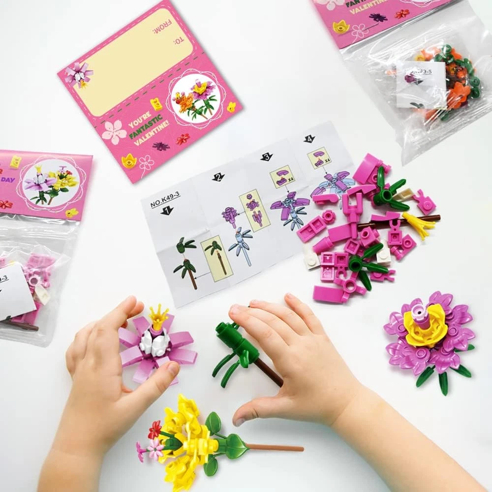 💌 Super Value Pack: Our Valentine’s gift set includes 24pcs of flower building block with 24pcs gift card header. Each around 4 pieces set, your kids can learn different flower by set up by themselves. 🌹Durable and Safe: Our bouquet flower blocks made of original ABS material, 100% Safe, Non-toxic and durable plastic kits which is safe for kids. But contains small parts, be careful to prevent swallow for kids under 3 years old. 💐Unique Design: There are 6 different designs of flower included. This flower bouquet blocks will never wilt and fade, better than real flowers. And each flower comes with a Valentine card, the card header is also a valentines gift card. 6 styles of flower bouquet kits are perfect for kids Valentines classroom exchange gift. 🌷Clear Instructions: Each of 24 bouquet building blocks set have separate package, each un- assembled blocks come with separate instructions to show you how to assemble, kids can easily set up by themselves. 🎁Perfect Gifts: This flower building block kids Valentine party favors set brings joy to many occasions, suitable for kid's Valentine's Day, especially for classroom exchange gift, Valentine's party favors, classroom prizes. Exchanging these novel valentine gift cards, share your love and gratitude to classmates, friends and families, the one who receive the gift cards must be surprised and happy. Product Description WODMAZ 24 Pack Valentines Flowers Building Blocks with Exchange Cards as Valentines Day Gifts for Kids