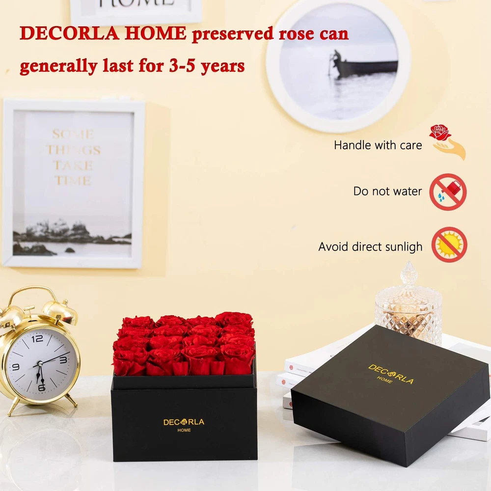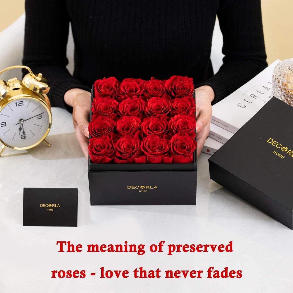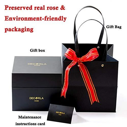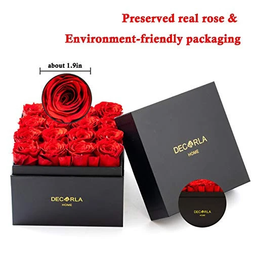 🌹 Valentines Day Decor!Preserved flowers are made of high-quality real roses, which are made by 109 processes, which can perfectly maintain the perfect appearance of roses. Eternal roses can be kept for a long time without fading. The color, shape and feel are almost the same as real roses, and the roses can be stored for 3-5 years. 🌹 Eternal Rose Flowers Each flower is unique. Each high-quality rose has passed CE safety certification, and is made with environmentally friendly and healthy methods to ensure that the ingredients are non-toxic and safe, no pollen allergy risk, no peculiar smell, suitable for people who are allergic to pollen. The actual product may be different from the flower in the picture, it is not a quality problem, please think twice before buying. 🌹The square gift box contains 16 eternal roses, a gift bag, and a small card on which you can write your wishes. Packaging materials such as gift boxes are made of recyclable and degradable materials. 4. Suitable for all kinds of festivals and crowds ---- not only suitable for birthdays, Valentine's Day, Mothers Day Gifts, Thanksgiving, Christmas, wedding anniversaries, love anniversaries and other festivals, but also for friends, elders, visiting patients and hard work work yourself. 5