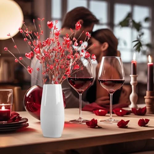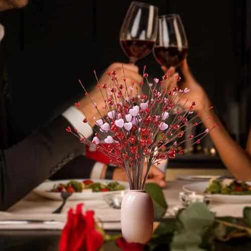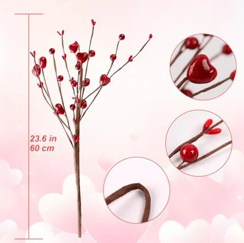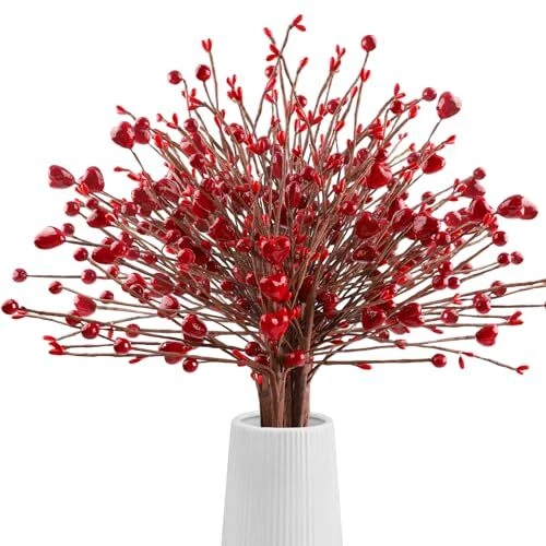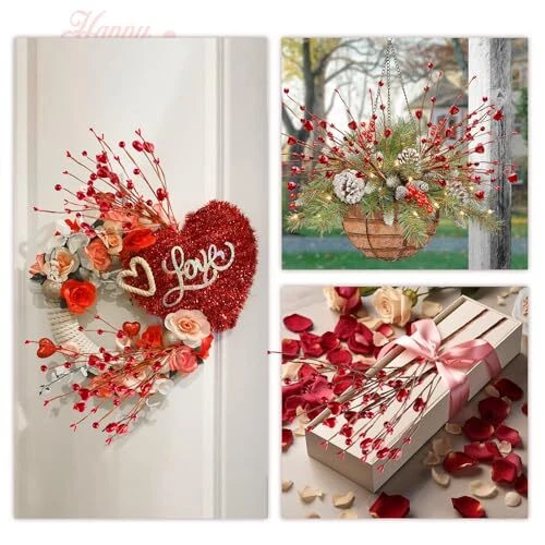 Valentines Day Decorations, 6 Branches Artificial Flowers Berry Stem, Heart