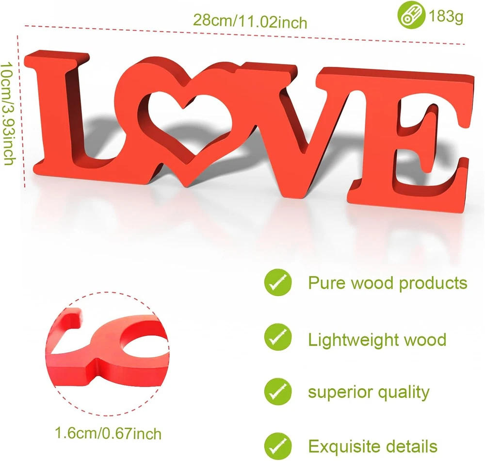 Valentines Day Decorations Love Sign Wooden Blocks V-day Gift Red Product Details Color: Red Brand: YMMLLP Product Dimensions: 10"L x 3"W 【 Valentine's Day Decors Design 】 Tthis wooden love block decor features LOVE text combined with a classic color that looks beautiful and warm; This exquisite decoration can add a romantic and thoughtful touch to your living area or personal space and impress your guests. the romantic and classic design will create a romantic atmosphere to your home or party decor. 【 Long lasting to use 】 Our freestanding centerpieces wood love valentine decorations are made of natural wood, sturdy and durable. Besides, the white words and red color are well printed, which will not fade easily. Due to the premium material and workmanship, with fine workmanship, exquisite appearance, bright and vivid colors, easily catching the eyes of others and gaining attentionour love blocks will keep their best appearance for a long time. 【Suitable size for table decoration】 The L❤VE sculpture word art is approx 11.2*4.2*0.7 inch. Suitable for each smooth platform in your home, easy to notice, highlighting your aesthetic and artistic atmosphere. You can build these cute love blocks into different shapes randomly on your table as you like. 【Wide decorating occasions】 Our wooden love blocks are of sweet and romantic design, which is suitable for decorating table for some formal occasions like Valentine’s Day candlelight dinner, wedding, engagement party, lover’s birthday party and so on. You can also place them in your house as a lovely ornaments be applied on your home, office, living room, bedroom, desk to bring a sweet and romantic atmosphere to your home or party decoration 【Easily favored gift options】 Our wooden love block is the ideal choice for you to send to your lover as a sweet present. He will love the gift you selected carefully for him. Besides,you can share the romantic rustic wood love sign as a thoughtful gift to your family, relatives, neighbors, colleagues, classmates, roommates, and team members to express your care and greetings and deliver good wishes