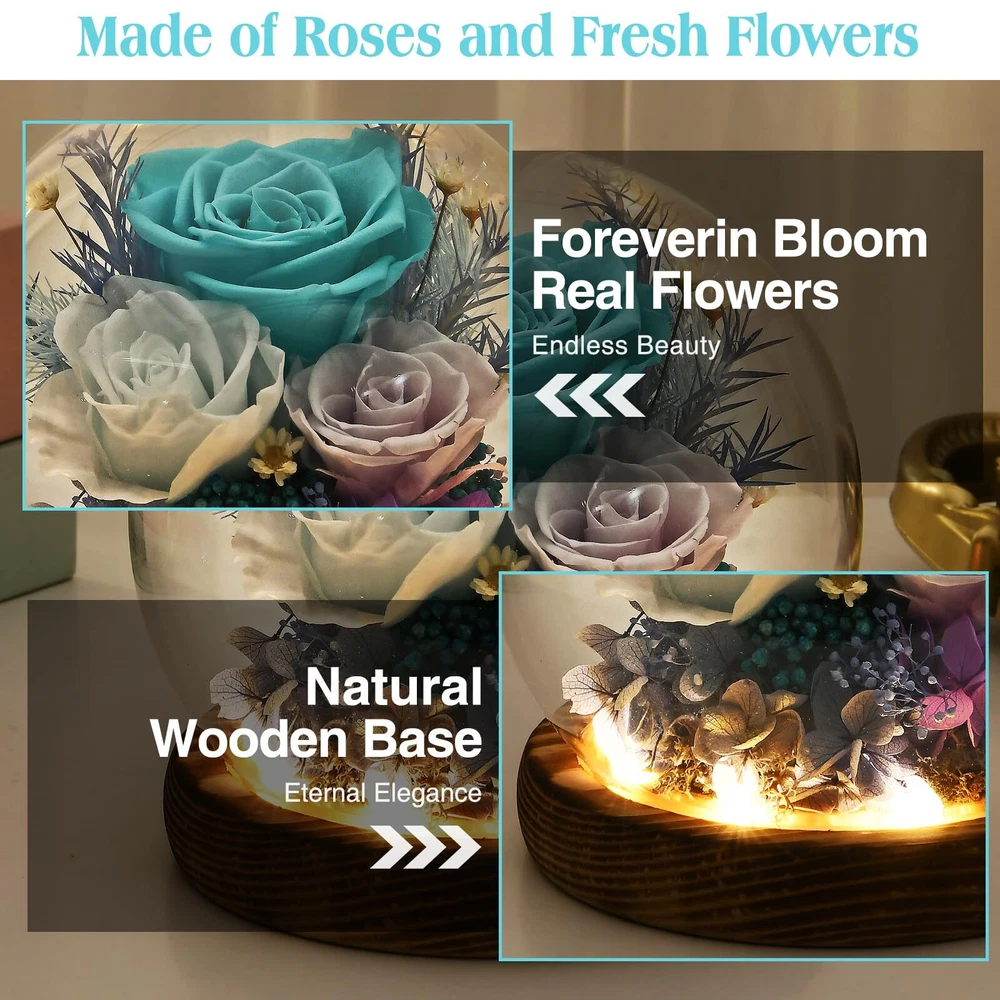 Valentines Day Gifts for Her: Lasting Reminder of Your Love & Appreciation, Preserved Roses Gifts for Women, Mom, Grandma, Wife, Girlfriend, Sister, Mother, Daughter, Family and Friends. Suitable for Various Occasions: Preserved flowers with LED lights in glass dome can be given to family and friends as gifts for Valentine's Day, Christmas, Mother's Day, Thanksgiving, engagement, housewarming, wedding. Flowers for Delivery Prime: Handcrafted with natural flowers, we carefully choose the finest and most vibrant Flowers from our garden. Using advanced preservation techniques, these roses retain their beauty and freshness indefinitely, symbolizing everlasting elegance and love. Exquisite Gifts Sets: Product Size: 5.3*5.3inches, Forever Eternal Rose with Gifts Box Set (You don’t need to buy additional gift packaging). Warm Tips: Eternal Flower Glass Dome was securely encased in foam with in the box, which greatly reduces the possibility of the product being damaged in shipping. Please contact us if you have any inquiry or issue.