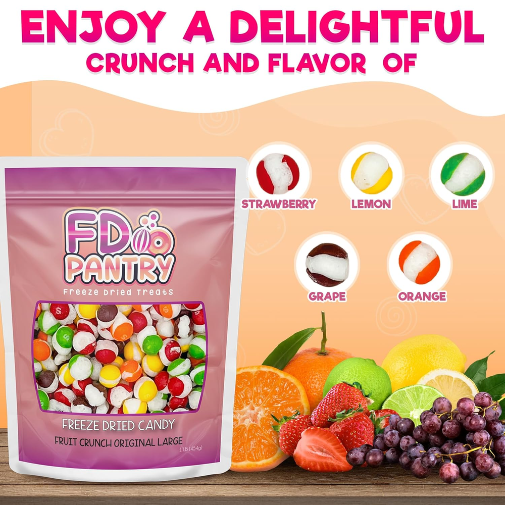 Freeze Dried Candy Assorted Fruit Flavors: Enjoy a delightful burst of Strawberry, Orange, Lemon, Grape, and Lime in our Original Candy Freeze Dried assortment. A flavor for every taste bud in a large 1lb pouch! Convenient & Resealable Packaging: Our 16oz, 1lb, 1 pound of candy comes in a 10x7x2 inch resealable bag, ensuring freshness and easy storage. Open and enjoy directly from the pouch without any mess. Enhanced Sweetness and Crunch: Experience the unique, light, and crunchy texture of our freeze-dried candies. A special drying process intensifies the flavors without sticking to your teeth, perfect for snacking anytime, anywhere. Versatile Snack for All Occasions: Whether it's for a backpacking adventure, camping, emergency food storage, or just a crave-worthy snack, our freeze-dried treats are an ideal choice for any situation. Gift-Ready for Any Event: Packaged in a sizable bag, these candies make an excellent gift option for Easter, birthdays, or any celebration. Delight friends and family with the innovative taste of freeze-dried candy. Product Description What is your Favorite Flavor? Add to Cart Add to Cart Add to Cart Add to Cart Add to Cart Add to Cart Add to Cart Customer Reviews 4.4 out of 5 stars 3,892 4.4 out of 5 stars 3,892 4.4 out of 5 stars 3,892 3.7 out of 5 stars 2,108 4.3 out of 5 stars 548 4.4 out of 5 stars 3,892 4.4 out of 5 stars 3,892 Price $18.99 $ 18 . 99 $7.99 $ 7 . 99 $12.99 $ 12 . 99 $9.99 $ 9 . 99 $14.99 $ 14 . 99 $8.99 $ 8 . 99 $18.99 $ 18 . 99 Flavor Original Original Original Original Original + Wildberry Sour Wildberry Freeze Dried ✔ ✔ ✔ ✔ ✔ ✔ ✔ Crunchy Candy ✔ ✔ ✔ ✔ ✔ ✔ ✔ Giftable ✔ ✔ ✔ ✔ ✔ ✔ ✔ Size 10x7 in 8x5 in 8x5 in 8x5 in 8x5 in 8x5 in 10x7 in Weight 16 oz 4 oz 8 oz 5 oz 8 oz 4 oz 16 oz