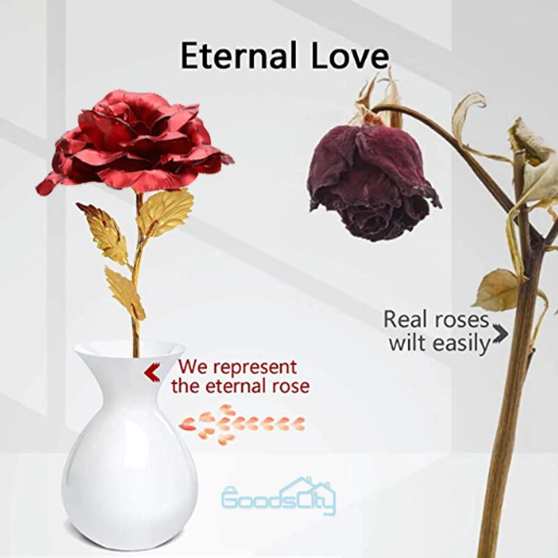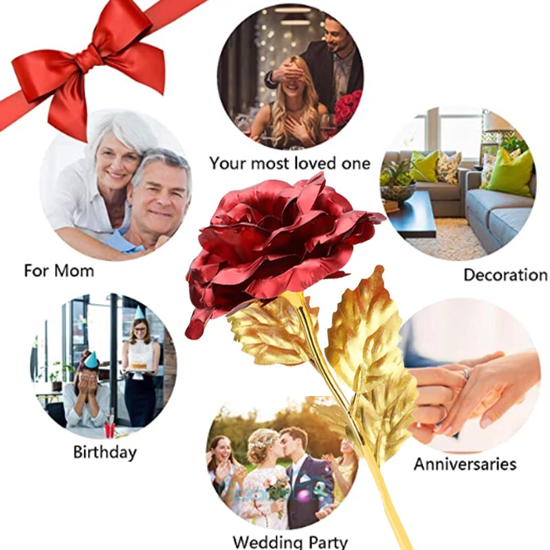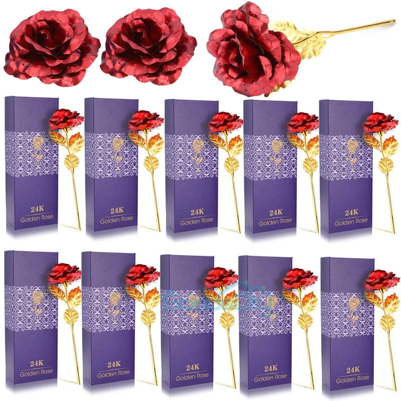 Valentines Day Gift 24K Real Dipped Rose Gold Rose Flower Uniques Gift For Girls Ship within 24 hours. 100% New & Excellent Quality Strictly QC, Each item was fully checked before shipping FREE & FAST Shipping delivery with Tracking Number Features: * Petals, leaves on the surface are gold-plated. Rose rod is polyethylene gold-plated. The rose internal is polyethylene plastic. * Light weight, petal remains strong, not easy to fold, deformation, not faded. (note: the product internal skeleton is of polyethylene plastic material, which is very light, not metal) Specification: Total length: approx. 25cm Leaf length: approx. 5cm Flower diameter: approx. 8cm Flower bud diameter: approx. 6cm Package Includes: 1/2/3/5/10 x Dipped Foil Gold Plated Rose 1/2/3/5/10 x Gift Box Return Delivery details Payment FAQ's Contact us Return If you found that the item was damaged when you get it, pls contact us firstly Delivery details We Ship to Payment address ONLY. Payment PayPal accepted. FAQ's None Contact us Welcome to contact us for any question. On Jan 28, 2024 at 10:14:08 PST, seller added the following information: