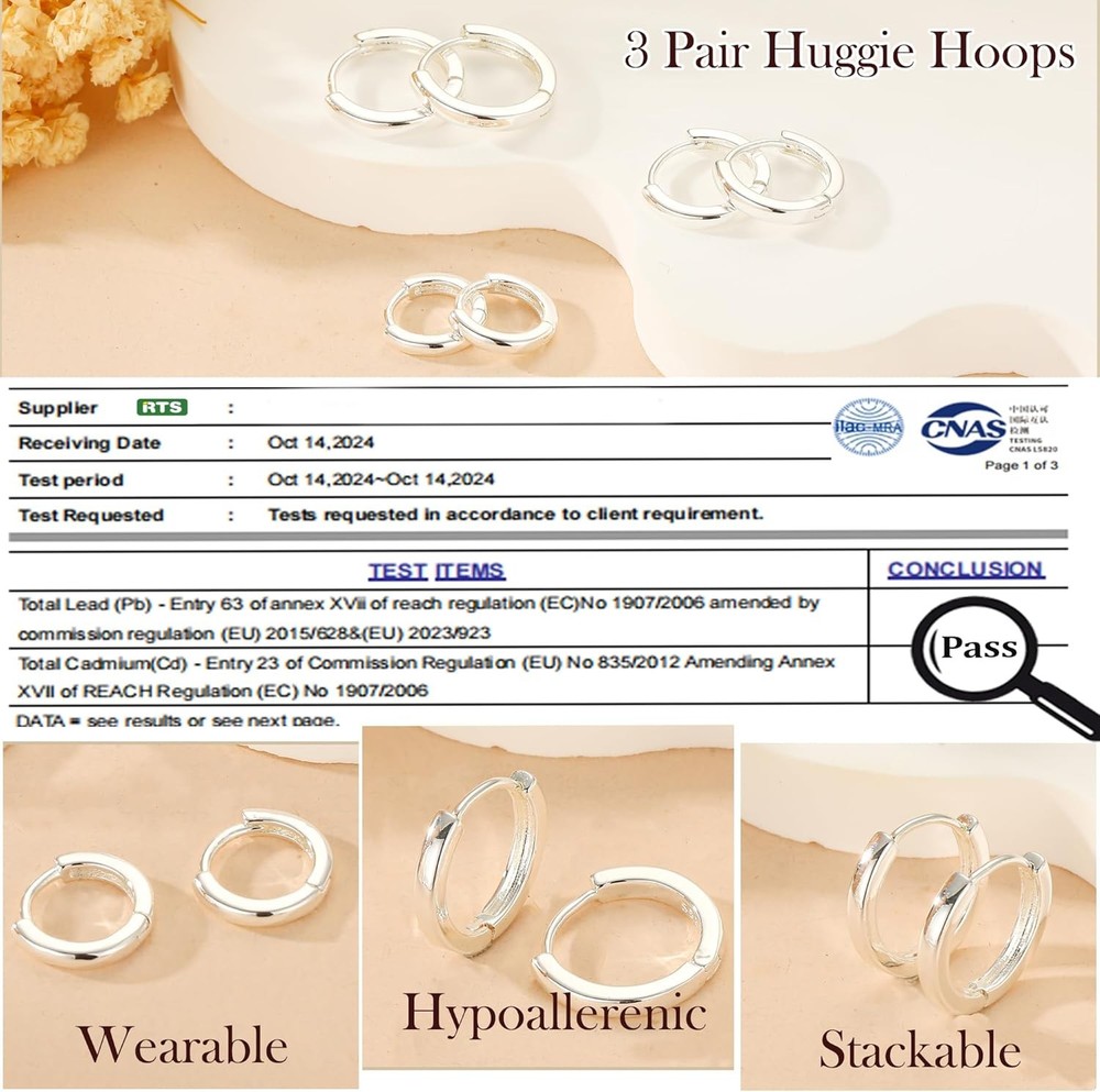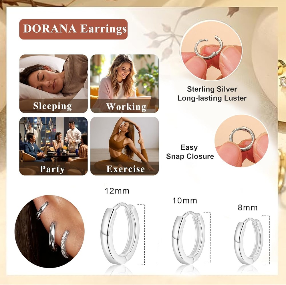 Free eBay listing template designed by dewiso.com DORANA Valentines Day Gift 3 Pairs 925 Sterling Silver Earrings for Women Girls Non Tarnish Small Hypoallergenic Huggie Hoops Cartilage Stack Earring Sets for Multiple Piercing FREE AND FAST SHIPPING! Silver Earrings Set: You will be receiving 3 pairs earring stacks Silver, each boasting distinctive designs, sparkling cubic zirconia, and charming huggie hoops.This versatile earrings set promises a captivating ensemble, whether worn individually for subtle sophistication or layered together for a statement-making flair. Hypoallergenic Huggie Earrings Set: small silver hoops set is made of premium 925 sterling silver post, have a smooth surface through careful polishing techniques, nickel-free, lead-free, long-lasting and non tarnish are especially for who have sensitive ears. small Silver hoop earrings are set with high-quality cubic zirconia, which have a dazzling sparkle that is reminiscent of real diamonds. Silver Earring Sets for Multiple Piercings:Gague:20G=0.8mm, Small Hoop Earrings Diameter: 10mm, ensuring a perfect fit for any type of ear lobe, Silver or Silver Earrings Set Color to Choose. Simple and classical design, classical and timeless, Wearing these Silver studs and hoops, you will be more beautiful and elegant Silver Earring Stack: These small Silver earrings for women are elegantly presented in a delightful gift box. Ideal jewellry Presents for women, yourself, mom, wife, daughter, sister and friends important for you on Birthday, Christmas, Thanksgiving, Valentine's Day, Mother's Day, Anniversary and more. DORANA JEWELRY:Eachnon tarnish silver earrings are carefully crafted with attention to detail and superb craftsmanship. Allowing you to keep silver earrings hoops on all day without any discomfort.silver stackable earrings makes it a timeless piece she 'll be able to enjoy for years to come. Product We offer a 30-Day Return Policy on items which you are not completely satisfied with. You have the option for a full-refund or an exchange of the item. No returns are available on items shipped outside of the US . Shipping We offer Free Shipping to the US and ship within 2 business days of payment, usually sooner. We use UPS express shipping. That's why your products are usually delivered within 3 days . Contact We try our very best to make sure every customer is completely satisfied. If there's a problem , message us! We're happy to help. 24/7 live chat available.