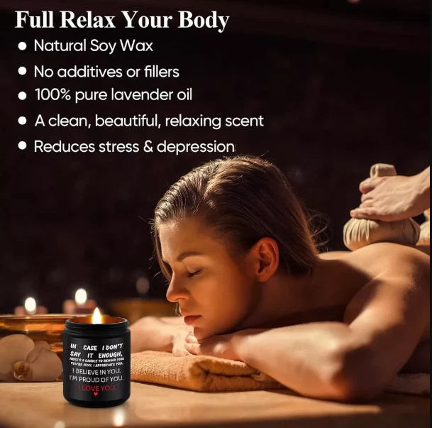 Expressive Romantic Candle Gift 🕯️❤️ – The Perfect Way to Say "I Love You" ✨ Heartfelt Appreciation & Love Message – Show your deepest emotions with this beautifully crafted candle featuring the touching message: “IN CASE I DON’T SAY IT ENOUGH, HERE’S A CANDLE TO REMIND YOU: YOU’RE SEXY. I APPRECIATE YOU. I BELIEVE IN YOU. I’M PROUD OF YOU. I LOVE YOU.” 💖 This sentimental and romantic gift is perfect for him, her, couples, husbands, wives, boyfriends, and girlfriends on any special occasion. 💍 Perfect Engagement & Wedding Gift – Looking for a thoughtful engagement gift for couples or a unique wedding gift idea ? This candle is a lasting token of love and support, celebrating relationship milestones with warmth and affection. 🎁💑 🌿 Lavender Scented Candle for Relaxation – Infused with a calming lavender aroma , this candle helps create a soothing, intimate ambiance , making it an ideal romantic candle gift for a cozy date night, self-care routine, or stress relief . 🕯️💜 🎉 Personalized Anniversary & Milestone Gift – Searching for a funny couple gift or a unique personalized anniversary gift ? This candle perfectly balances sentimentality and humor , making it an unforgettable present for Valentine’s Day, birthdays, and anniversaries . 💝 🎀 Versatile for Any Occasion – Whether you’re celebrating an anniversary, birthday, wedding, engagement, or just want to surprise your partner "just because" , this candle is a versatile and heartfelt gift . It’s a luxurious, elegant, and meaningful expression of love . 💞 🔥 Premium Quality & Long-Lasting Burn – Made from high-quality soy wax , this candle ensures a clean, long-lasting burn , filling any space with a delightful aroma. Ideal for home décor, relaxation, and romantic settings . 🕯️✨ 💌 Perfect for Gifting & Ready to Impress – Comes in an aesthetic, gift-ready packaging , making it a hassle-free gift for couples, long-distance relationships, newlyweds, and loved ones . 🎁🎀 ✅ Great for eBay, Amazon, Etsy & More – A must-have for those looking for anniversary gifts for couples, romantic gifts for her, appreciation gifts for him, or unique gifts for boyfriends and girlfriends . 🌟 Make every moment special with this romantic lavender-scented candle – a perfect blend of love, appreciation, and relaxation! 💕🔥 Brand Unbrended Color I LOVE YOU Product Dimensions 2.75"W x 3.74"H Number of Items 1 Scent lavender Are Batteries Included No Indoor/Outdoor Usage Indoor Specific Uses For Product Celebration Shape Cylindrical Material Soy Wax Container Material Glass Occasion Mother's Day, Christmas, New Year, Birthday, Thanksgiving Seasons All Season Special Feature Unique Message, Soy Wax Style Modern Wick Quantity 1 Model Name Jar Candles Theme Love Package Information Jar Material Type Free Paraffin, Beeswax, Gel