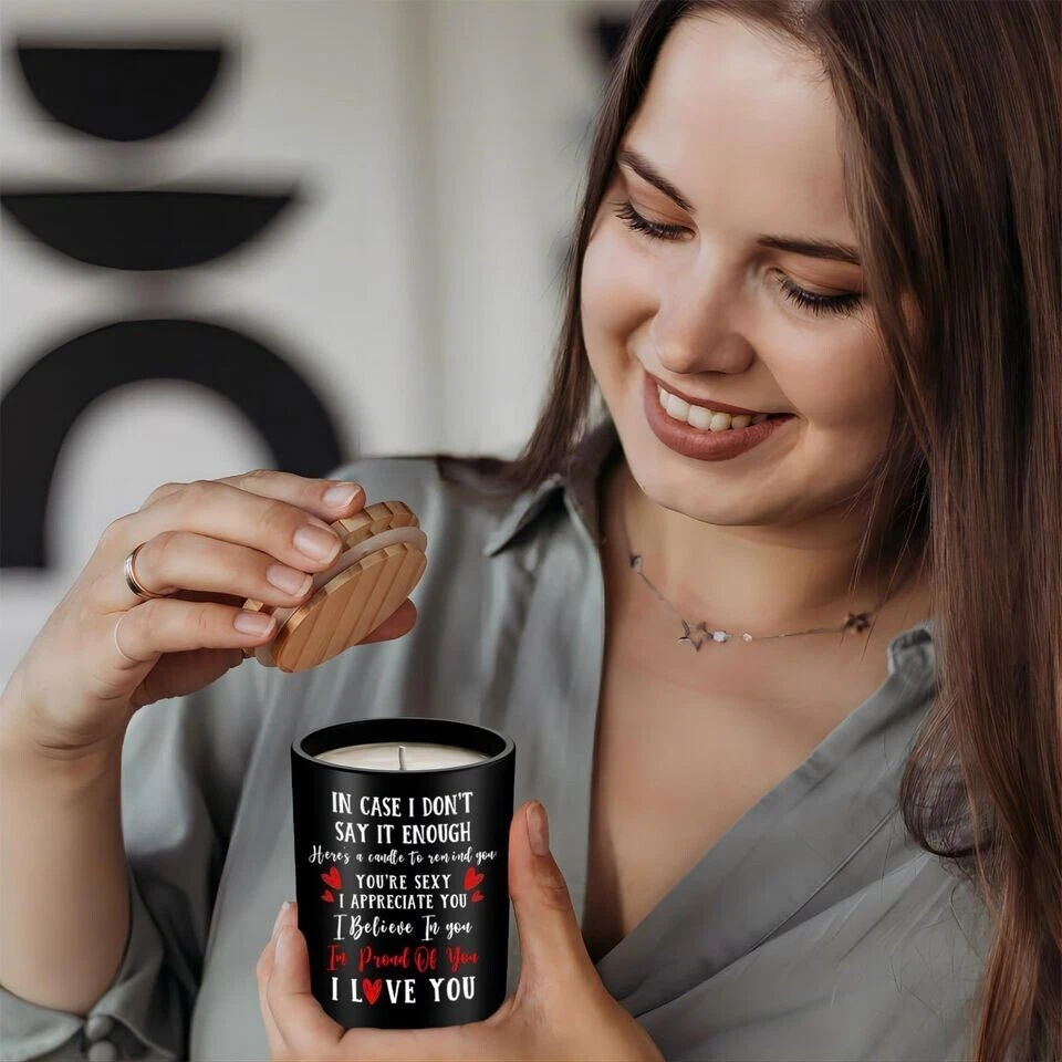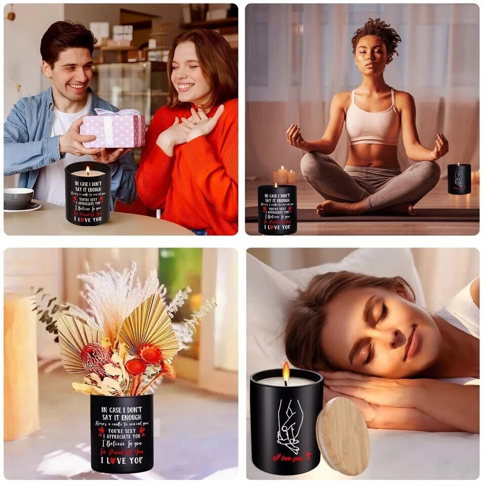 Valentine's Day Gift for Her or Him - Anniversary or Wedding Gift for Women - Couples Gifts for Girlfriend, Boyfriend, Wife, Husband, Romantic Gifts for Him, Her, Vanilla Lavender Scented Candle 10oz About this item: ROMANTIC COUPLES GIFTS - Liven up your relationship with your loved ones with our stunning couple candle gifts. It will be a surprise to give this romantic birthday gift and show your love for your loved ones! Moreover, these are also Christmas, Valentine, Mother, Anniversary, birthday gifts for couples to symbolize their love. WIFE, GIRLFRIEND, HUSBAND, BOYFRIEND BIRTHDAY GIFTS OR ON ANY OCCASION: The special one in your life will undoubtedly be filled with joy and happiness. A bright, heartwarming smile will illuminate their face as they open it, their eyes sparkling with anticipation and excitement. Used for wife husband birthday gift, birthday gifts for girlfriend boyfriend, birthday gifts for him her, ... UNIQUE ANNIVERSARY GIFTS - Look no further than our vanilla candle, whether you are looking for anniversary, valentines day gifts for husband and wife or an couple gift with a sentimental message. Ideal gift for boyfriend, husband, romantic I love you gifts for her, or even a date night gift for couples. BIRTHDAY GIFT IDEAS - These stunning candles make ideal gifts for couples, men, women, suitable for any occasion you want to spread your love. A simple warm and heartfelt candle girlfriend ideas gifts suitable for anniversary, birthday, valentine's day, Mother's Day, thanksgiving, Christmas, wedding, thank you gifts, holiday. ECO-FRIENDLY And REUSABLE - The candle is handmade with high quality natural soy wax and Lemongrass fragrance oils. Our soy wax burns nice and clean and Eco-friendly that perfect for aromatherapy, meditation, yoga, etc. Wax can easily be cleaned out of the jar with hot soapy water and the jar can be reused or recycled. 55 HOURS BURNING TIME - Crafted with soy wax, this Candle for Him Her allows a clean, even burn for approximately. 55 hours. The lead-free wick, which has been specifically designed to ensure a continuous and steady burn, makes the wax melt evenly and consistently. After full use, this glass jar can be used for home decor and is also suitable for placing your small objects.