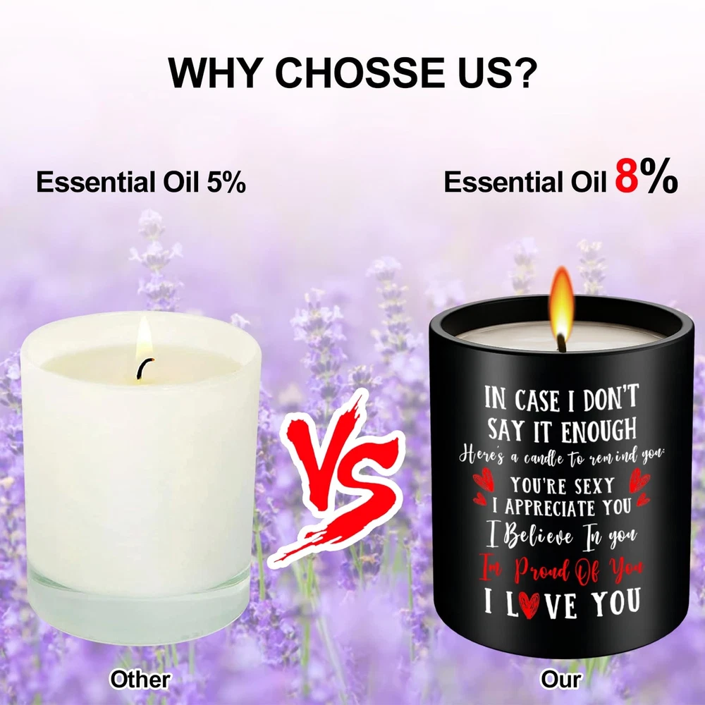 Valentines Day Gift Candles, Wife Romantic Valentine Present For Her I Love You ROMANTIC COUPLES GIFTS - Liven up your relationship with your loved ones with our stunning couple candle gifts. It will be a surprise to give this romantic birthday gift and show your love for your loved ones! Moreover, these are also Christmas, Valentine, Mother, Anniversary, birthday gifts for couples to symbolize their love. WIFE, GIRLFRIEND, HUSBAND, BOYFRIEND BIRTHDAY GIFTS OR ON ANY OCCASION: The special one in your life will undoubtedly be filled with joy and happiness. A bright, heartwarming smile will illuminate their face as they open it, their eyes sparkling with anticipation and excitement. Used for wife husband birthday gift, birthday gifts for girlfriend boyfriend, birthday gifts for him her, ... UNIQUE ANNIVERSARY GIFTS - Look no further than our vanilla candle, whether you are looking for anniversary, valentines day gifts for husband and wife or an couple gift with a sentimental message. Ideal gift for boyfriend, husband, romantic I love you gifts for her, or even a date night gift for couples. BIRTHDAY GIFT IDEAS - These stunning candles make ideal gifts for couples, men, women, suitable for any occasion you want to spread your love. A simple warm and heartfelt candle girlfriend ideas gifts suitable for anniversary, birthday, valentine's day, Mother's Day, thanksgiving, Christmas, wedding, thank you gifts, holiday. ECO-FRIENDLY And REUSABLE - The candle is handmade with high quality natural soy wax and Lemongrass fragrance oils. Our soy wax burns nice and clean and Eco-friendly that perfect for aromatherapy, meditation, yoga, etc. Wax can easily be cleaned out of the jar with hot soapy water and the jar can be reused or recycled. 55 HOURS BURNING TIME - Crafted with soy wax, this Candle for Him Her allows a clean, even burn for approximately. 55 hours. The lead-free wick, which has been specifically designed to ensure a continuous and steady burn, makes the wax melt evenly and consistently. After full use, this glass jar can be used for home decor and is also suitable for placing your small objects. Shipping We offer FREE shipping on all orders! We ship within Three business days of payment, usually sooner. We use a selection of shipping services such as UPS, FedEx, USPS etc. We only ship to the lower 48 states, no APO/FPO addresses or PO Boxes allowed. Local pickups and combined shipping options are not provided at this time. Return You can return a product for up to 30 days from the date you purchased it. Any product you return must be in the same condition you received it and in the original packaging. Please keep the receipt. Payment We accept payment by any of the following methods: PayPal Please pay as soon as possible after winning an auction, as that will allow us to post your item to you sooner! Feedback Customer satisfaction is very important to us. If you have any problem with your order, please contact us and we will do our best to make you satisfied. Contact Us If you have any queries, please contact us via ebay. We usually respond within 24 hours on weekdays. Please visit our eBay store to check out other items for sale! Thank you for shopping at our store.
