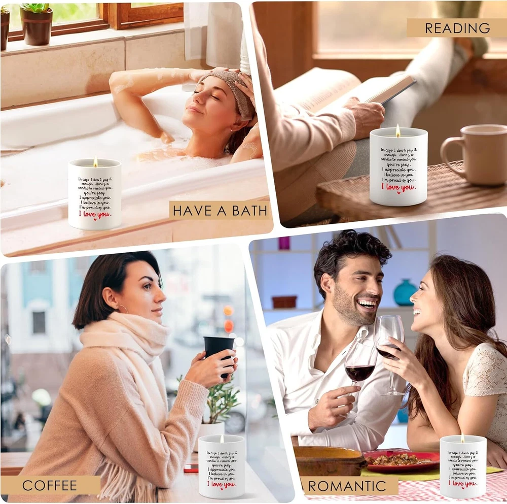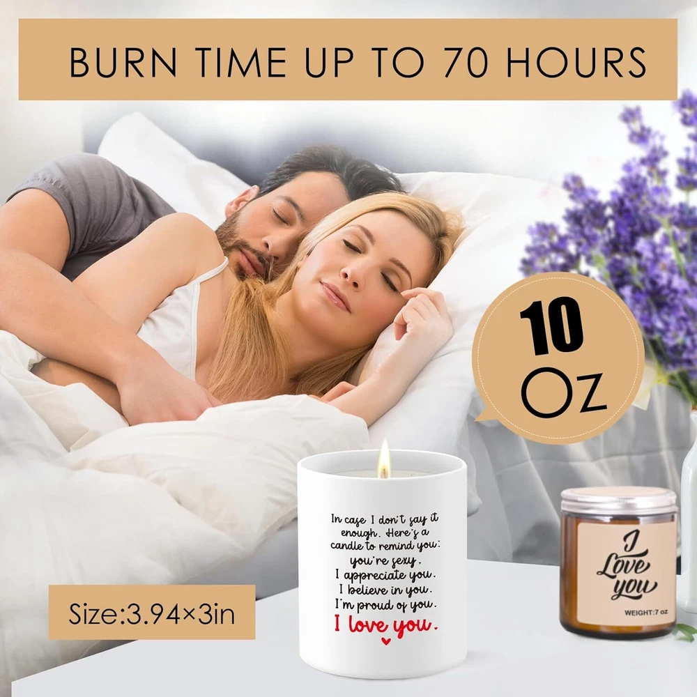 Free eBay listing template designed by dewiso.com Valentines Day Gifts for Her Him, 10oz Romantic Gifts for Wife Husband Girlfriend Boyfriend, Valentines Day Anniversary Wedding I Love You Candle Gifts for Women, Scented Soy Candle FREE AND FAST SHIPPING! About this item Valentines Day Gifts for Her: "IN CASE I DON'T SAY IT ENOUGH. HERE'S A CANDLE TO REMIND YOU: YOU'RE ATTRACTIVE I APPRECIAE YOU. I BELIEVE IN YOU, I'M PROUD OF YOU, I LOVE YOU", heartwarming and unique messages make this Valentines Day gift ideas a great way to send wishes to your loved ones! Making it an ideas choice for gifts for girlfriends, I love you gifts for her, Ideal gift for boyfriend, valentines day gifts for husband and wife, anniversary gifts for couples, birthday gifts for couples, romantic birthday gift for her Natural Soy Wax and Essential Oil:This handmade candles is made of natural soy wax, cotton wick and natural essential oil, which is burning more long time, sufficiently, ensuring you can enjoy its exquisite fragrance for longer. Perfect for home, bedroom, living room, bathroom, kitchen, office and so on Long Lasting Burn Time: Valentines Day gifts for women. 10 oz cotton wick candle can burns up to 70 hours. Candles will not produce black smoke, and it burns smoothly and cleanly. Funny candles are versatile and can be recycled repeatedly when used up Birthday Gift Ideas: Love gifts for her. A simple warm and heartfelt candle girlfriend ideas gifts suitable for valentine's day, anniversary, birthday, Mother's Day, thanksgiving, Christmas, wedding, thank you gifts, holiday, women's day Lavender Fragrance Candle: Premium lavender fragrance candle has a soothing effect, it can be used to relieve stress and improve sleep. it can also be used to make the room feel more relaxed simply, delight the mood, and remove the depression.A fun gift for women for a stress-free, comfortable life › Product We offer a 30-Day Return Policy on items which you are not completely satisfied with. You have the option for a full-refund or an exchange of the item. No returns are available on items shipped outside of the US . Shipping We offer Free Shipping to the US and ship within 2 business days of payment, usually sooner. We use UPS express shipping. That's why your products are usually delivered within 3 days . Contact We try our very best to make sure every customer is completely satisfied. If there's a problem , message us! We're happy to help. 24/7 live chat available.