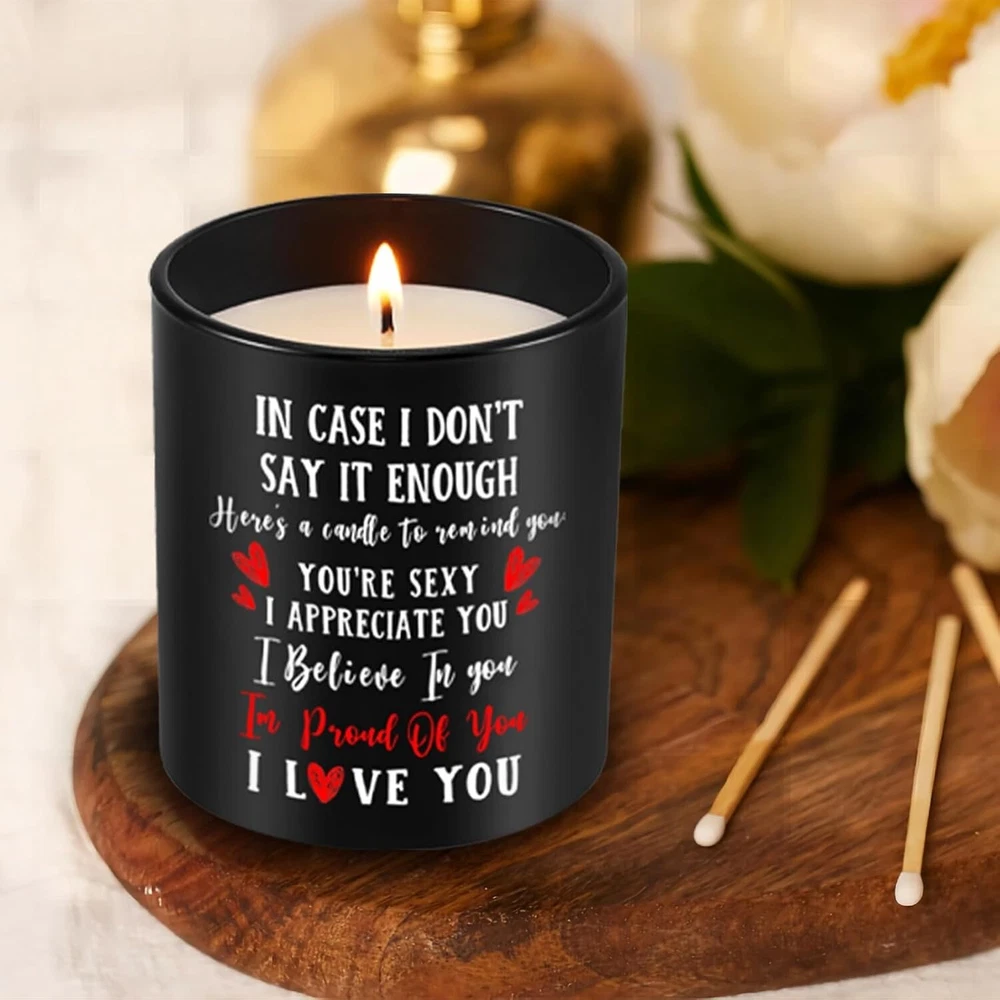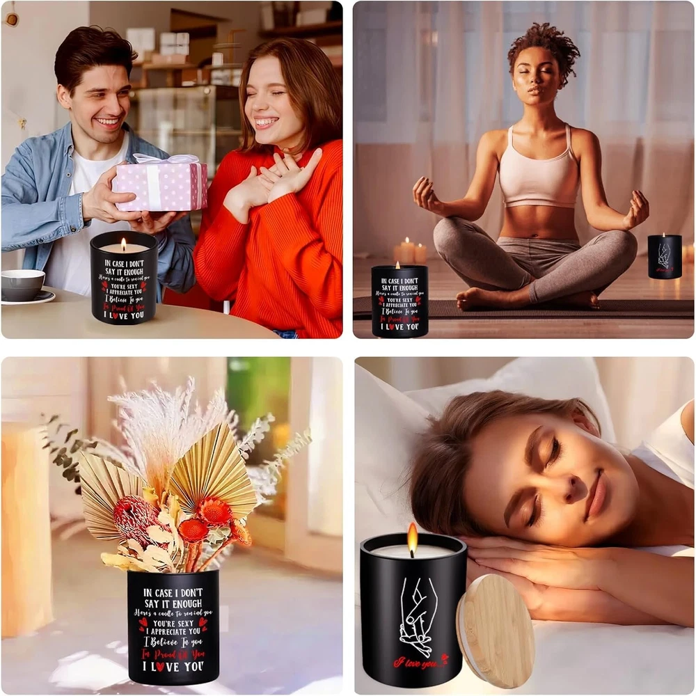About this item ROMANTIC COUPLES GIFTS - Liven up your relationship with your loved ones with our stunning couple candle gifts. It will be a surprise to give this romantic birthday gift and show your love for your loved ones! Moreover, these are also Christmas, Valentine, Mother, Anniversary, birthday gifts for couples to symbolize their love. WIFE, GIRLFRIEND, HUSBAND, BOYFRIEND BIRTHDAY GIFTS OR ON ANY OCCASION: The special one in your life will undoubtedly be filled with joy and happiness. A bright, heartwarming smile will illuminate their face as they open it, their eyes sparkling with anticipation and excitement. Used for wife husband birthday gift, birthday gifts for girlfriend boyfriend, birthday gifts for him her, ... UNIQUE ANNIVERSARY GIFTS - Look no further than our vanilla candle, whether you are looking for anniversary, valentines day gifts for husband and wife or an couple gift with a sentimental message. Ideal gift for boyfriend, husband, romantic I love you gifts for her, or even a date night gift for couples. BIRTHDAY GIFT IDEAS - These stunning candles make ideal gifts for couples, men, women, suitable for any occasion you want to spread your love. A simple warm and heartfelt candle girlfriend ideas gifts suitable for anniversary, birthday, valentine's day, Mother's Day, thanksgiving, Christmas, wedding, thank you gifts, holiday. ECO-FRIENDLY And REUSABLE - The candle is handmade with high quality natural soy wax and Lemongrass fragrance oils. Our soy wax burns nice and clean and Eco-friendly that perfect for aromatherapy, meditation, yoga, etc. Wax can easily be cleaned out of the jar with hot soapy water and the jar can be reused or recycled. 55 HOURS BURNING TIME - Crafted with soy wax, this Candle for Him Her allows a clean, even burn for approximately. 55 hours. The lead-free wick, which has been specifically designed to ensure a continuous and steady burn, makes the wax melt evenly and consistently. After full use, this glass jar can be used for home decor and is also suitable for placing your small objects.