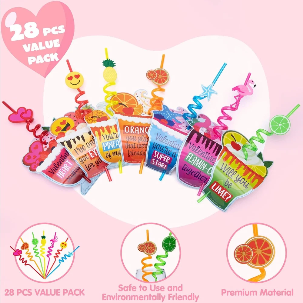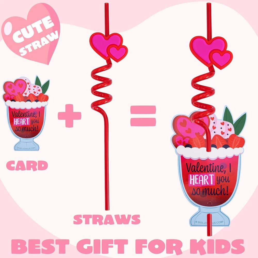 Valentines Day Gift Cards with Colorful Crazy Loop Reusable Straws Kids Toys