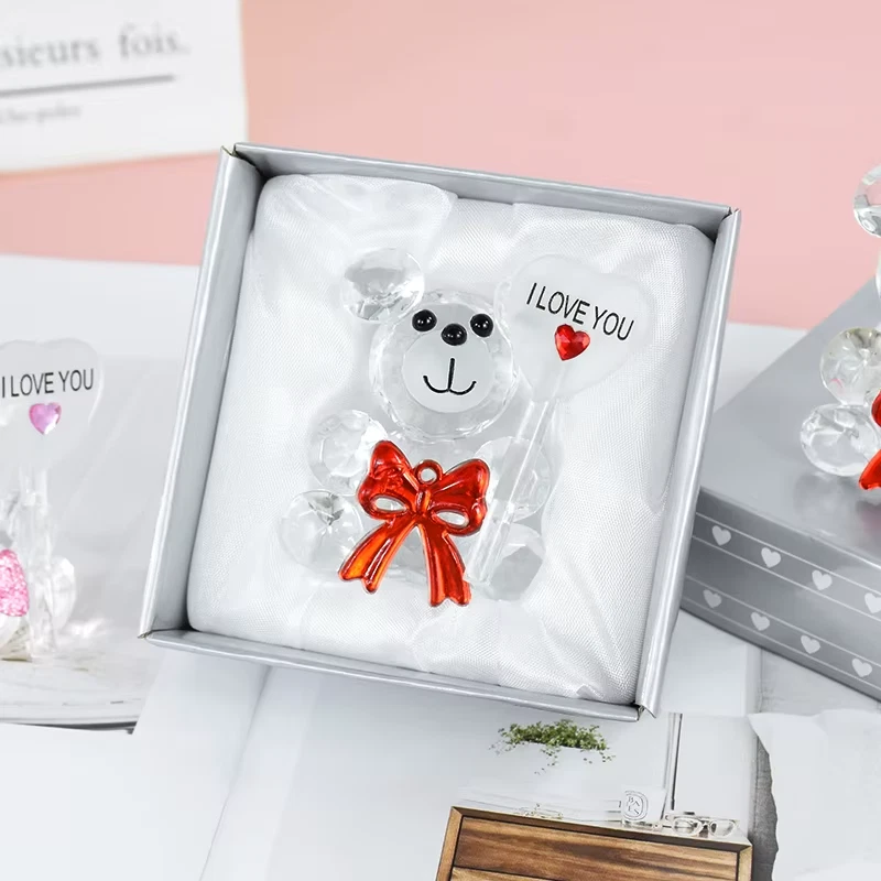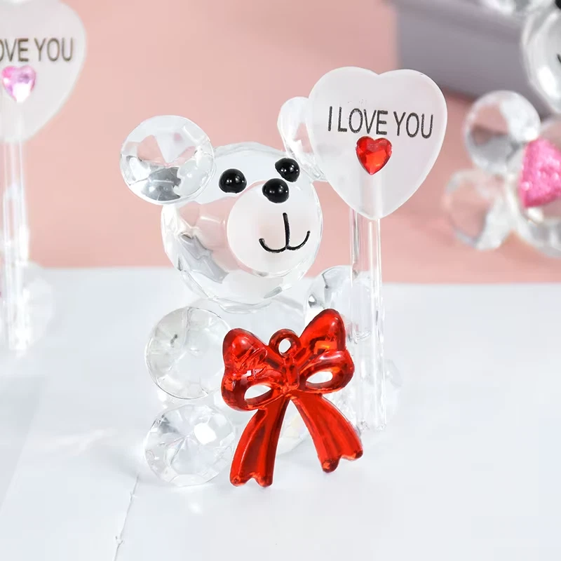 The "Valentines Day Gift I Love You Crystal Bear" is a crystal bear figurine designed for Valentine's Day. It serves as a sentimental gift to express love and affection. Perfect for adding a touch of charm to floral or home décor, this crystal bear would make a lovely addition to any home or garden setting.