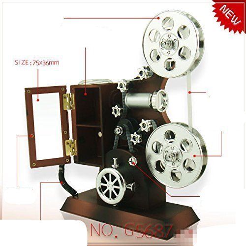 Valentines Day Gift,Mechanical Classical Movie Projector Music Box With Jewelry Box and Mirror · 100% Brand new come with nice gift box · made with high quality clockwork music box · Mechanical music box, with little jewelry box & mirror · this classical projector music box can be really good decor in your house · Material: Poly-resin, Dimension: 16.8 x 20.8 x 7.5 cm