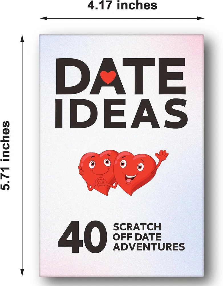 Valentines Day Gift Scratch off Date Ideas Card Games Gifts, Fun & Adventurous Easy to Play: Perfect for all kinds of couples. Before you scratch each card use the hints to help you better anticipate what type of date awaits. Simply scratch off a card while playing this dating couple game, let the adventure begin and complete the date activities Fun & Adventure: You'll get many exciting date ideas with our scratch off cards. And that will add an element of surprise and excitement to your romantic adventures Great Couples Stuff: Get to know each other games for adults, develop new relationships, or have long-distance relationship gifts. Questions card game for couples, bride gifts. Gifts for your partner, boyfriend, girlfriend, wife, husband, and significant other What Will You Get: Keep the spark alive in your relationship. Perfect for fans of 2 player games and date night games. Break the routine and create unforgettable moments together. It's a thoughtful and unique gifts that will create unforgettable memories for you and your partner Couples Gifts: Whether you have been married for years or have been in a relationship or a new couple. Whether you're on a tight budget or short on time, this dating deck will provide unique and unforgettable experiences. Special presents for moments like Valentine's Day, birthdays, anniversaries,galentines Product Description A Gift to Cherish as a Couple - This extraordinary anniversary present is sure to make waves during any romantic occasion. It's an ideal choice to Valentine's , Christmas, or as a thoughtful gift for newlyweds, whether for a boyfriend, bride, girlfriend, husband, or wife. The date night box offers an array of inventive date ideas, ranging from cozy nights in to exciting outings, allowing you and your partner to explore new experiences and create unforgettable memories together. Item Weight 7.4 ounces Color White & Black Product Dimensions 5.1 x 4 x 1 inches Manufacturer recommended age 18 years and up Manufacturer Lapogy Shipping Fast shipping is very important for us. Our standard US shipping service is FREE. Your order will be shipped within 5 business days upon full payment received. Your order will be delivered within 3 business days after the handling time. We are not responsible for undeliverable addresses. Returns and payment We offer a 30 days return policy from checkout winning date. FeedBack Your feedback very important to us, after you get your package and you are satisfied with our service please leave us positive feedback If you have any problem with your order / any questions please before leave any type of feedback For any questions, using eBay contact system Please visit our eBay store to check out other items for sale! Thank you for shopping at our store.