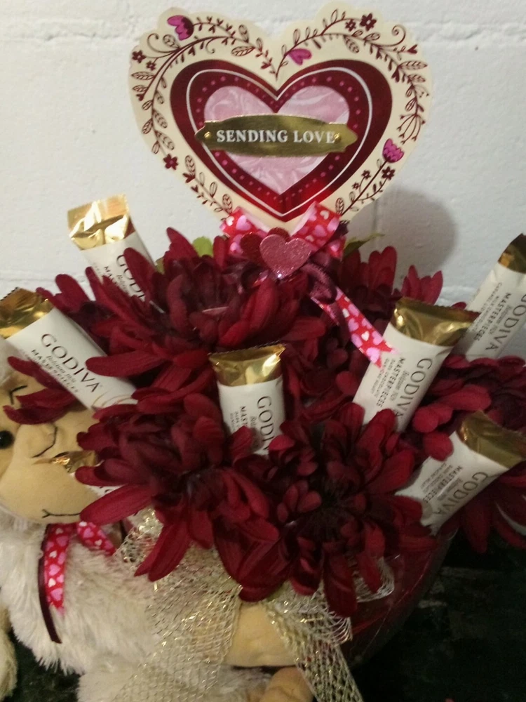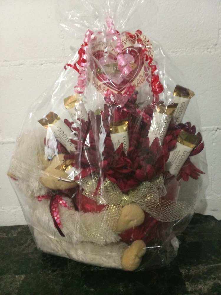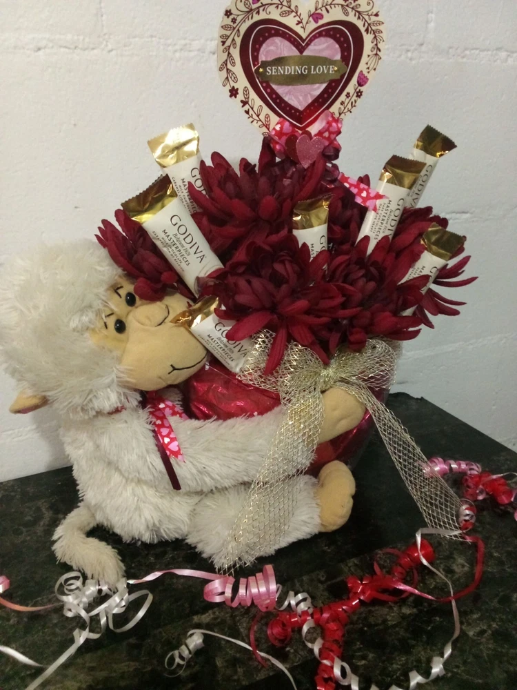 Surprise your loved one with this handmade Valentine's Day gift basket that is filled with love and all things sweet. This multipurpose gift set features an adorable monkey character theme with heart-shaped chocolates, beautiful flowers, and delicious Godiva truffles. The colorful and vibrant multicolor design adds a touch of uniqueness, making it a perfect gift for any occasion. You can even personalize it with your own special message to make it more meaningful. This all-in-one gift basket is professionally crafted and made in the United States, making it a perfect choice for anyone who appreciates quality.