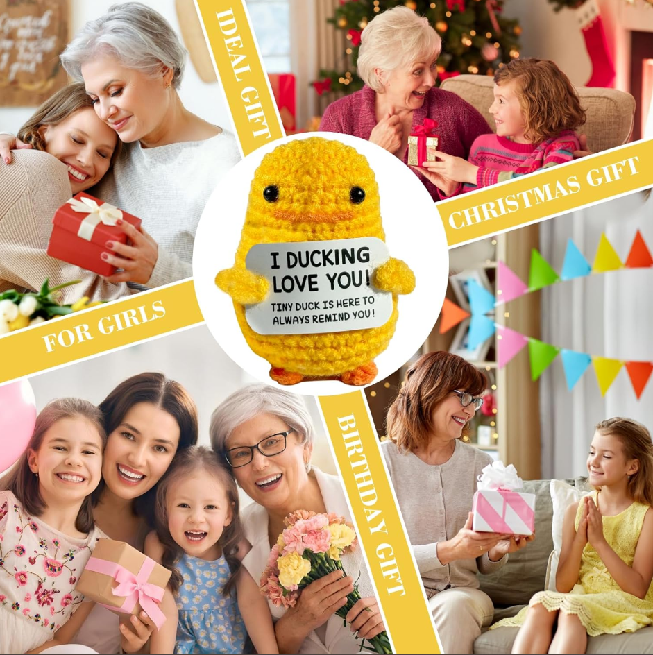 Gifts For Women: You will receive 1 piece of funny positive duck a card with encouraging words. This card is stuck on the positive duck doll. Positive Crochet Animals: The funny duck with "I Duck Love You",Ideal gifts for birthday,graduation,Mother's Day,Valentine's Day, Christmas,Anniversary Day,This duck will Bringing surprises and laughter to everyone. Material: The duck is made of premium quality wool yarn, lightweigh and comfortable to hold in the hand,bringing you a good mood for the whole day. Size: 3.14 x 2.36 inches, these crochet ducks are compact and fit perfectly in pockets or backpacks,you can take it anywhere you want to go and share this positivity with others. Stress Relief Gift: When the everyday stresses of work, life, traffic or a source of laughter during work time, these positive ducks are here to lend a hand.