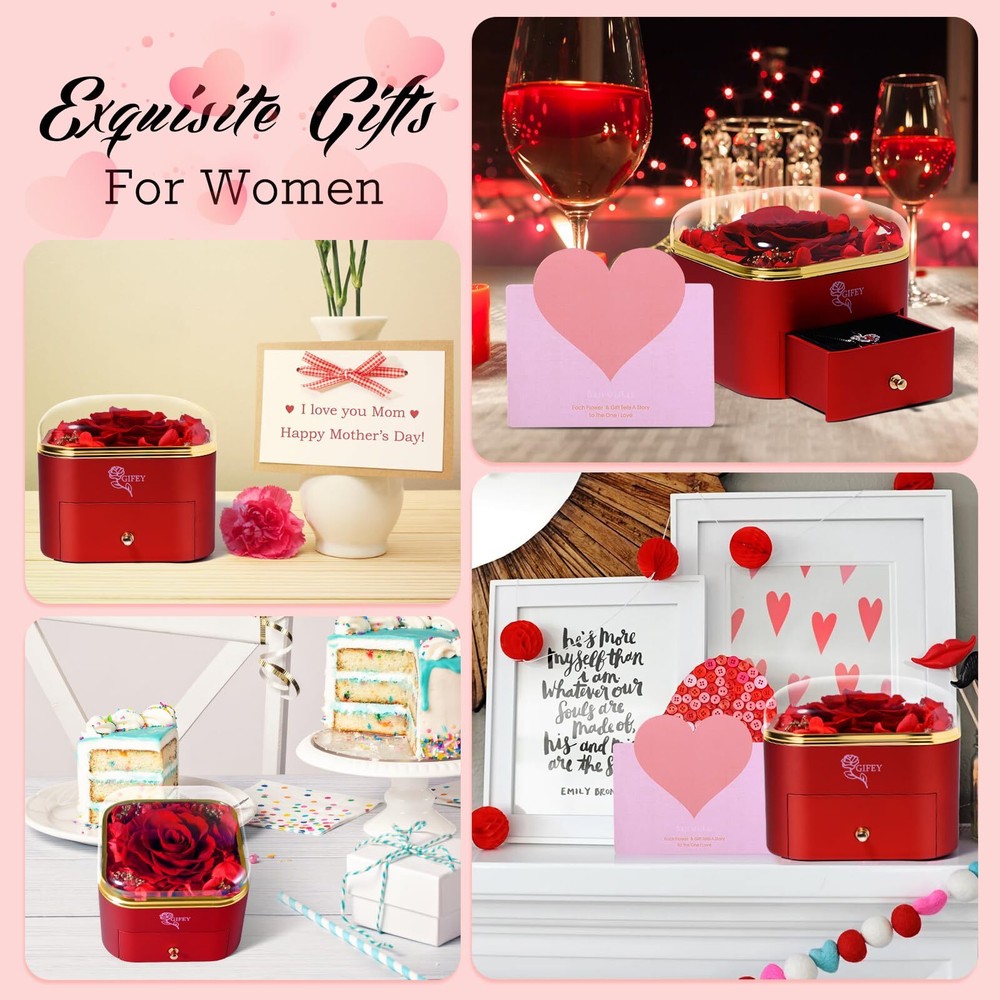 This stunning Valentine's gift is absolutely perfect! The preserved real rose looks incredibly fresh and elegant, beautifully displayed in the luxurious gift box. The "I Love You" necklace adds a sweet, personal touch, making it a heartfelt keepsake. She’ll adore wearing the necklace and displaying the rose as a daily reminder of your love. The thoughtful packaging, complete with a greeting card, makes it ready to gift instantly. A truly romantic and memorable present she’ll cherish!
