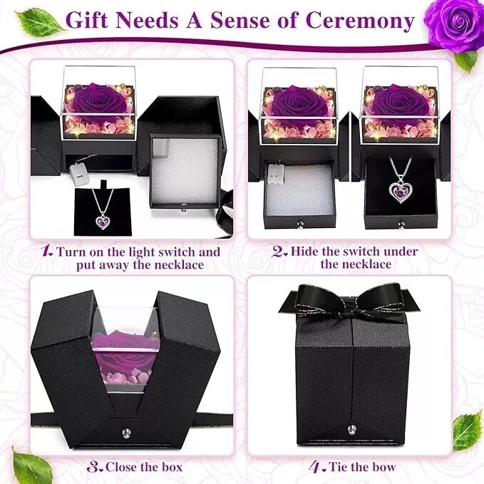 Meaningful Rose Gifts - The preserved roses symbolize eternal sincere love and the necklace represents guardians and means good blessings. Necklace and roses paired together, give them to your wife, girlfriend, mom, and grandma to express your endless love and blessings to them. Romantic Gift for Women - Our rose gifts are not only suitable for mothers and grandmoms on Mother's Day, but also for women on birthdays, Valentine's Day, Christmas, and anniversaries. Exquisite gift boxes and full blessed cards, bring surprises for them. Exquisite Home Decorations - Exquisite preserved flowers inside are great decorations, you can place them in the living room, bedroom, study, etc. of the house to add a warm atmosphere to your home. Easy To Care - Our preserved flowers are fresh, real roses, and the flowers are treated with a unique process to keep their original color and shape without wilting. You only need to put it in a dry place, with no watering or sunlight, it's very easy to maintain. 4 Color Options - We provide you with 4 different colors of preserved flowers, red, pink, blue, and purple, You can choose your favorite color for your loved one. No matter which one you choose, it can represent your most sincere love and blessings. Shipping We offer FREE shipping on all orders! We ship within Three business days of payment, usually sooner. We use a selection of shipping services such as UPS, FedEx, USPS etc. We only ship to the lower 48 states, no APO/FPO addresses or PO Boxes allowed. Local pickups and combined shipping options are not provided at this time. Return You can return a product for up to 30 days from the date you purchased it. Any product you return must be in the same condition you received it and in the original packaging. Please keep the receipt. Payment We accept payment by any of the following methods: PayPal Please pay as soon as possible after winning an auction, as that will allow us to post your item to you sooner! Feedback Customer satisfaction is very important to us. If you have any problem with your order, please contact us and we will do our best to make you satisfied. Contact Us If you have any queries, please contact us via ebay. We usually respond within 24 hours on weekdays. Please visit our eBay store to check out other items for sale! Thank you for shopping at our store. Disclaimer We are working with different suppliers in USA to deliver the item to your doorstep. If you have any issues regarding the item, Feel free to ask.