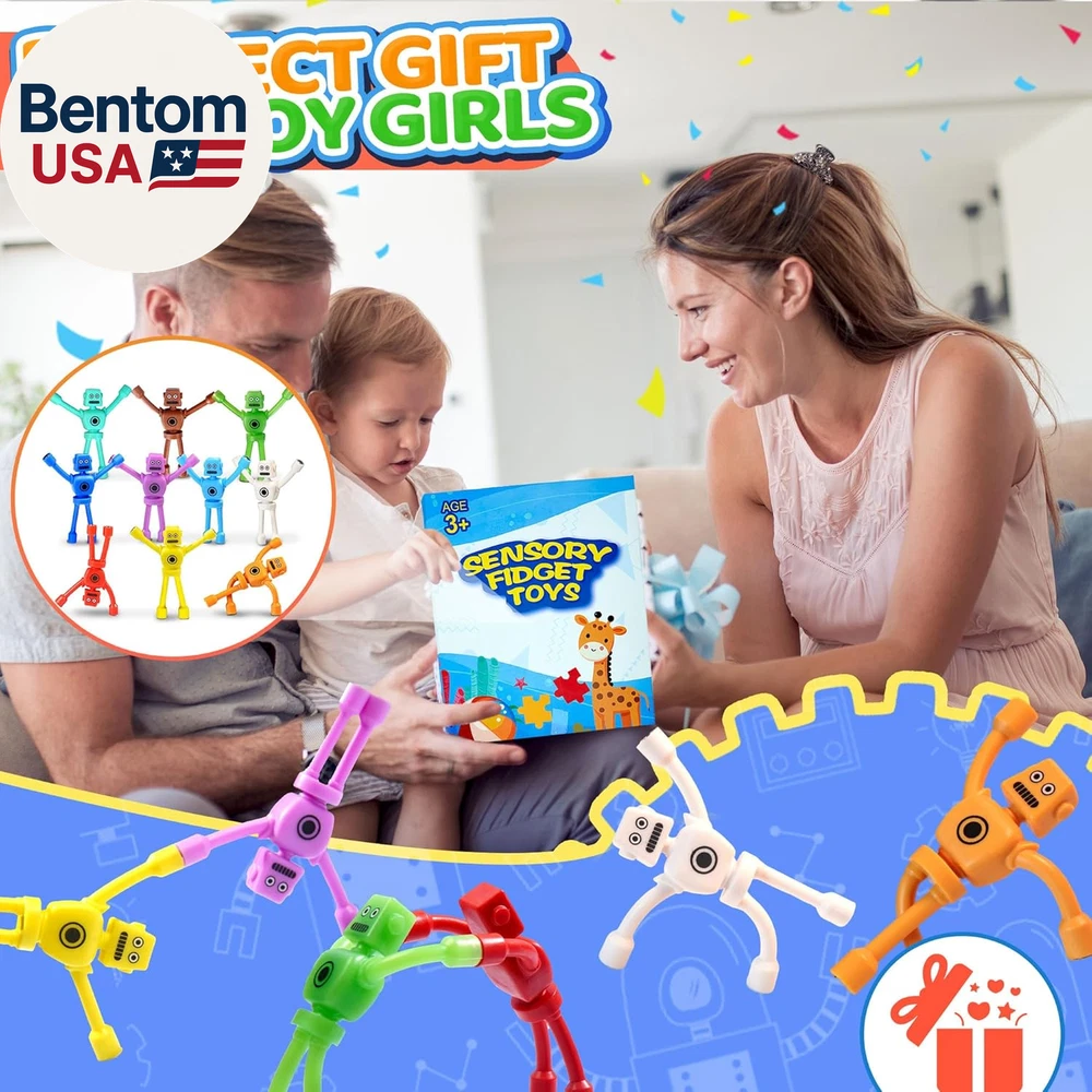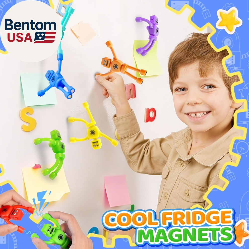 [Magnet Fidget Toys] Magnetic men toys, in robot form, come in 5 bright colours such as red, green, blue and purple, which can be glued to metal surfaces and DTY into various shapes to stimulate children's imaginations while travelling and entertaining well be best 2025 sensory fidget toy for toddlers, kids and adults. Gifts for boys and girls 3 4 5 6 7 8 year old [Cool Fridge Magnetic Robot Men ] The robot refrigerator magnet fidget is designed with elasticity and flexibility, lightweight, flexible and bendable, the magnet is wrapped around the toy's hands and feet, with a strong magnetic connection, safe, reliable and durable for toddler toys and kids toys [Travel Toys Essential] This toddlers travel activities toy is small, silent, portable and can be played with anywhere. This quiet magnetic people fidgets toy is a must-have travel toy to keep your child busy and entertained, this a great restaurant toys, airplane/plane toys, car toys, road trip activities essentials toys for age 2-4 [Fun Toddler Toys & Kids Toys] This magnet toy, not only can be used as fidget toys for toddlers kids adult, but also can be used in various life scenarios, for example, it can be used as a fridge magnet, adsorb small objects, convenience stickers, decorating the fridge classroom! You can also bring it to the office to play, as a pen holder, or stick it on the whiteboard, cool locker decoration and so on. Make your study and work easier, relieve stress, improve mood and efficiency [Valentines Day Gift for Kids] These magnetic fidgets toy can focus attention and are ideal for people with anxiety, autism and ADHD. Our magnetic people toys are loved by teachers and students alike, it definitely would be a great choice as a birthday gift, Valentines Day gift for kids classroom, Christmas gifts for grandkids, Christmas stocking stuffers and Easter basket stuffers good egg filler for toddlers and kids boy girls Product description Take Them Anywhere 1 On The Airplane 2 Toddler Travel Toys 3 Classroom Prizes 4 Favorite Busy Times