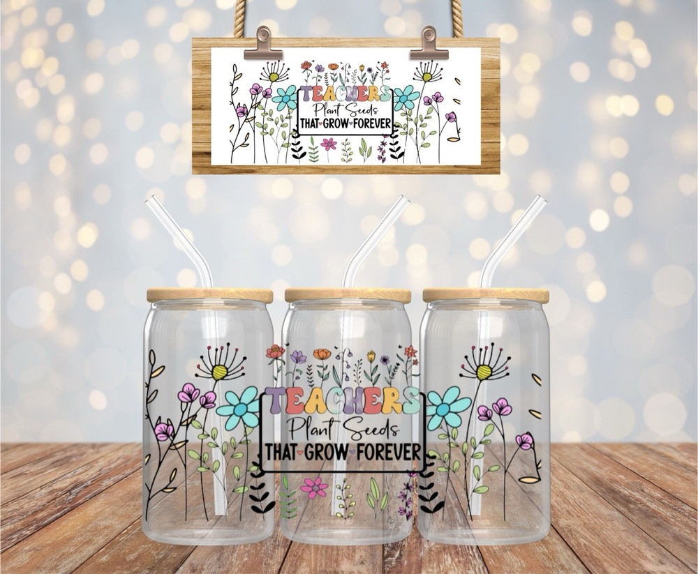 Surprise your friends and family with a cute "TEACHERS PLANT SEEDS" glass tumbler with bamboo lid! These tumblers are the perfect gift for any occasion! Glass: These 16oz. glass tumblers can be used for iced coffee, tea, and especially their favorite cocktails! Lids: These glass can lids with straw holes are made of quality bamboo material, which is safe, without BPA and phthalates, and they are easy to clean, so you can use them for a long time. GLASS STRAW INCLUDED! ♥ CARE INSTRUCTIONS These glasses are made using a high quality transfers. To ensure long life of of your glass, hand wash only and pat to dry. ♥ Each order is handmade to order, actual product may differ slightly from picture. Colors may vary slightly due to computer monitor settings.