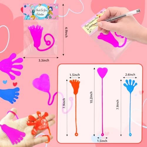 Return Policy Fast Delivery Trusted seller Valentines Day Gifts Cards for Kids Classroom, 28-Pack Sticky Hands Feet Hearts Toys with Class Exchange Cards, Valentines non candy Treats Goodies Prizes School Party Favors for Toddlers Boys Girls Product Description 28 Valentines Toys with Cards - This set includes sticky hands, sticky feet, sticky hearts with Valentines cards that allow your kids to write names on them. Valentines Gifts for Kids Classroom - Great Valentines school class gifts for your kids to give out to their classmate and friends on Valentine's Day. Valentines Party Favor Supplies - Excellent fun gifts goodie bag stuffer filler prizes non candy treats for kids party at school. Stretchy & Slimy Toys - These toys are made of vinyl, which is sticky, slimy, stretchy, and gooey. Kids' Favorite Stuff - Kids will love tossing and flinging them on the ceiling, walls, windows, and tables. It will keep them entertained for hours. Fun for All Ages - Perfect for preschool, kindergarten, daycare toddler boys girls and older kids who love playful fun. Shipping Returns Payment Shipping Shipping is FREE to all addresses other than APO/PO boxes in the lower 48 states. All our stock ships from US-based warehouses. Shipped via USPS or UPS (depending on location and package weight) Unless stated otherwise, all orders will ship within 24-72 hours of your payment being processed. Check our feedback to see the great reviews of FAST shipping we offer. Returns Seller does not accept returns Payment We currently accept payment via eBay managed payments only. Once payment is cleared, we will dispatch your shipment within 1-3 business days. Please refer to the "Shipping" tab for more information regarding shipping speed to your destination.