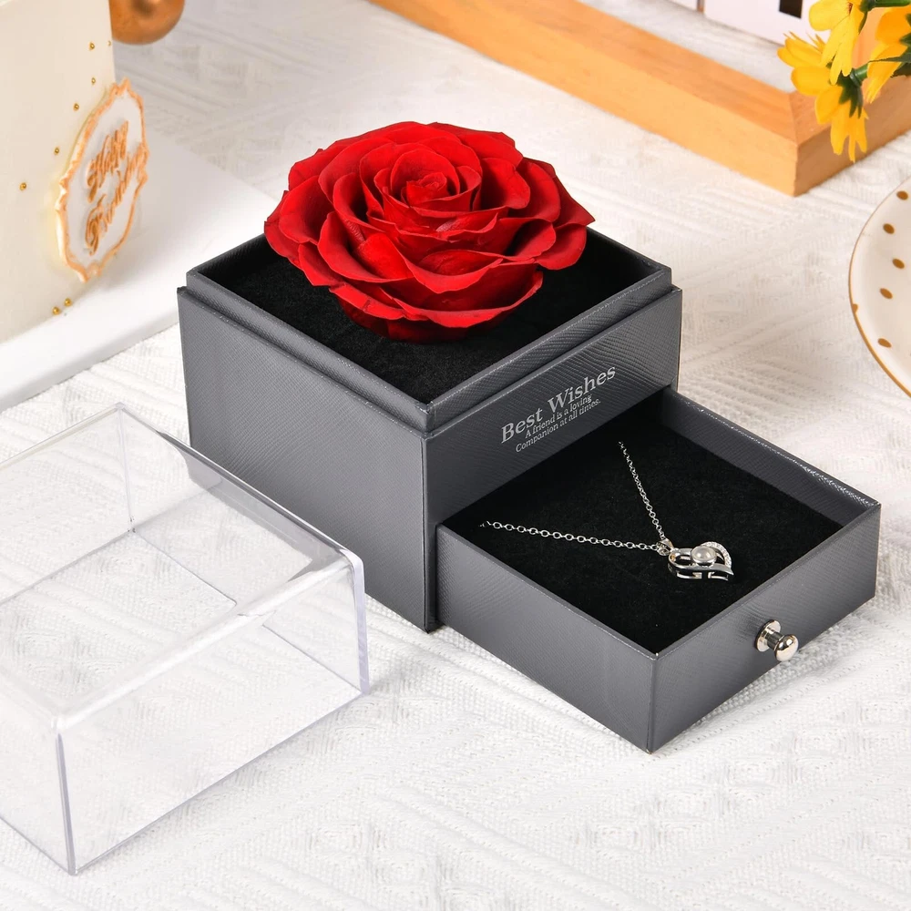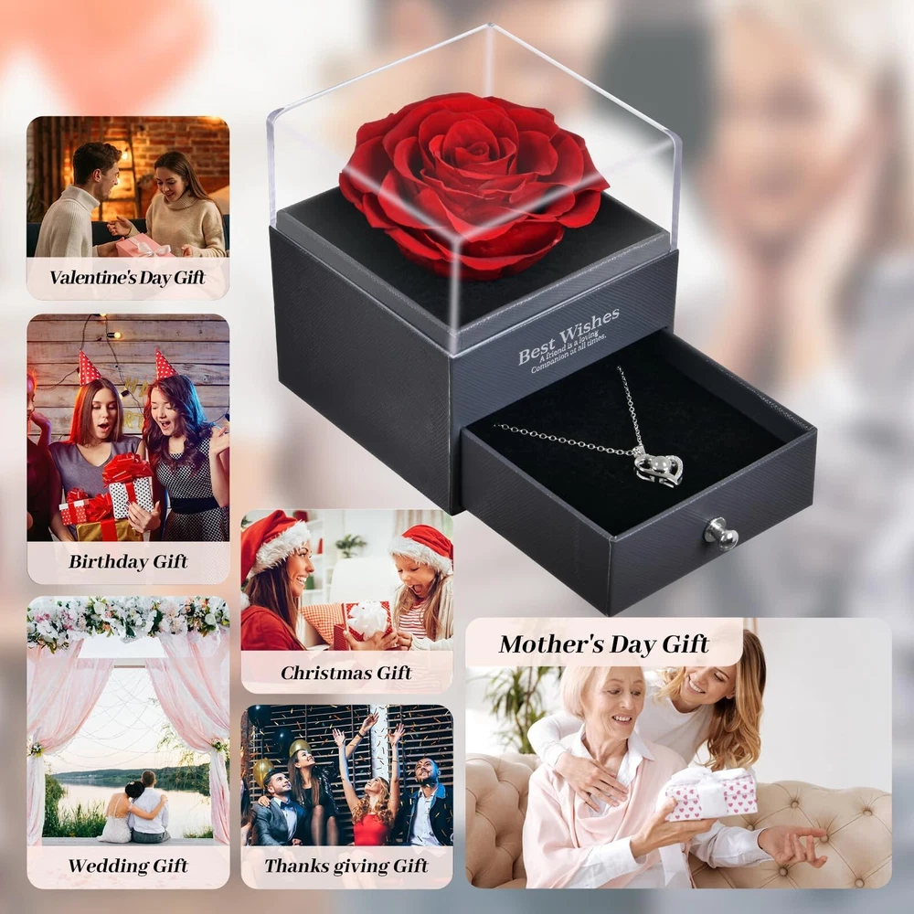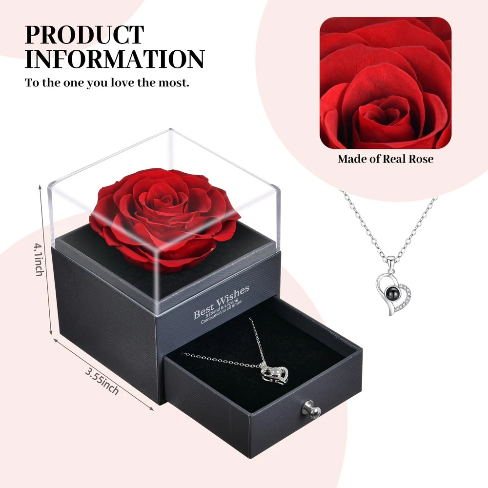 Valentines Day Gifts For Her-Valentines Day Flowers Gifts for Women-Valentine's Day Rose Gifts for Girlfriend,Wife,Mom - Rose with I Love You Necklace Gifts for Valentines Day Product Details Color: Red Brand: DEARCCINO MPN: Does not apply UPC: Does not apply EAN: Does not apply Product Dimensions: 3.5 x 3.5 x 4 inches Item Weight: 9.6 ounces Manufacturer: DEARCCINO Is Discontinued By Manufacturer: No Tick-repellent material: Rose Batteries required: No Item Weight: 0.6 Pounds Units: 1 Count 100% Real Rose :Preserved roses are handmade from natural fresh roses. Send her real roses, give her real love.The flower language of eternal flower is "love that never wither", a rose means that you are my only one. I Love You Necklace in 100 Languages:Heart 100 languages I LOVE YOU necklace in Hidden inside Bottom of the box, which means there are 100 love ways. Long Life and Easy Care:Keep the real rose in a cool place, without management, can be stored for 3 years, Show your forever love to your lover, family or friends with this romantic gift.Your loved ones will feel happy whenever they look at it. Romantic Gifts for Her:The preserved rose is a symbol of eternal true love and care. This is the perfect gift for her, for your girlfriend, wife, mom, grandma and your beloved, such as Valentine's Day gifts,Birthday gifts,Mother's Day gifts, Christmas gifts, Thanksgiving gifts, anniversary gifts,Wedding,Engagement Gifts.Creates a bright and romantic women gifts during family dinner, wedding,Party,etc. Great Gifts for Women making her day sweet. Package and Service:Rose flower and Heart necklace in the exquisite gift box. If you have any questions, please feel free to contact us. Birthday Gifts for Women,Rose Flower Gifts For Women, Christmas gifts for women, Mom Christmas gifts from daughter son,Great gifts for Mom,Wife,Grandma,Rose gifts for Girlfriend,Valentine's Day Gifts for Women.