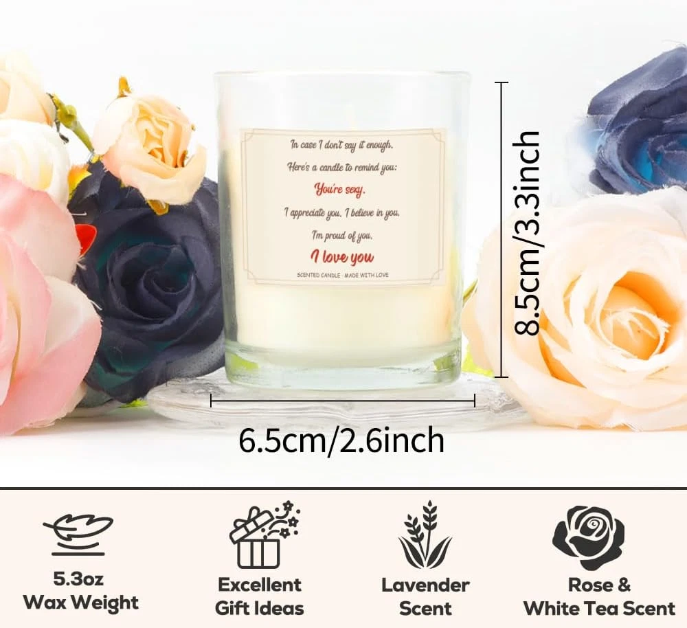 Store New Arrivals Add to Favorite View Feedback Contact Valentines Day Gifts for Her Couples Gift Ideas Girlfriend Gifts for Wife Birthday Scented Candles Valentines Gifts for Girlfriend Gifts Girlfriend Birthday Gifts for Couple Christmas Gifts for Her Description Item model number couple1-W-NO-candle--150g Wick Quantity 1 Style In case I don't say it enough. Number of Items 1 Pattern Letter Print Country of Origin China Candle Type Container Candle Container Material Glass Theme Floral Unit Count 1.0 Count Batteries Required? No Special Feature Aromatherapy Scent Blend Product Dimensions 2"W x 4"H Material Soy Wax Package Information Jar Specific Uses For Product Relaxation, Home Fragrance, Meditation, Spa, Aromatherapy, Celebration, Yoga, Ambience Indoor/Outdoor Usage Indoor Item Weight 2.82 ounces Material Feature Long-lasting burn with strong fragrance release Seasons All Season Occasion Wedding, Christmas, Birthday, Valentine's Day Special Features Aromatherapy Scent Blend Target Audience Women Color White Packaging Type box only Shape Cylindrical Scent Rose White Tea Product Care Instructions Keep away from drafts, heat sources, and flammable materials. Burn for no more than 4 hours at a time. Extinguish when not in use. Size 150 g Funny Gifts for Her or Him: In case I don't say it enough. Here's a candle to remind you: You're sexy. I appreciate you. I believe in you. I'm proud of you. I love you. This uniquely designed candle is not only a beautiful accent to a room, but also a delightful way to show your appreciation. girlfriend gifts, birthday gifts for girlfriend, cool girlfriend birthday gifts, christmas stocking stuffers for girlfriend, wife birthday gift ideas, wife gifts, valentines gifts for her. Premium Soya Candle: This aromatherapy candle is handmade with premium soya wax and natural essential oils, safe to use. Each one contains 150 grams/5.3 ounces of candle, which means it will last for over 24 hours. This relaxing aromatherapy candle can be used by family and friends, perfect for home or office use, the glass jar is recyclable and environmentally friendly. When the candle is finished, the jar can be reused as a vase, pen holder, decoration and more. Aroma of Rose White Tea Aromatherapy: When lit the scent emits the aroma of Rose White Tea, which will permeate the room, relaxing while spreading love and warmth into your home. It will help you fall asleep faster and relieve stress and fatigue. Meanwhile, to add a sense of ambience, you can use it for activities such as reading, yoga, bathing, exercise, aromatherapy, family gatherings, spas and appointments. Great Gift Ideas: This scented candle is an excellent gift choice for Dad, Mom, Grandpa, Grandma, Uncle, Aunt, Boyfriend, Girlfriend,Wife,Husband,Brother, Sister, Friends, Colleagues, Nurses, Girlfriends, Bosses or anyone else.Can be used as an anniversary gift, holiday gift, Halloween gift, Thanksgiving gift, Christmas gift, new home gift,wedding gift,sobriety gift,new job gift for women in office, boss gift, housewarming gift, or any other special day gift, it's a gift idea for any occasion! Trustworthy Customer Service: Our scented candles come with a box that eliminates the need to purchase separate gift wrap or boxes. Our unique candle gifts are both practical and stylish. If you encounter any problems during the purchase process, you can come to contact us. We will help you to solve it. Hope you have a happy shopping! Product Description ABOUT US We offer the best prices around on high quality products. Our E-store includes media such as books, movies, music and games while offering electronics, toys, sporting apparel, clothing, tools, general home, garden items and more. SHIPPING We are always working hard to ensure your package arrives as soon as possible. Please understand that some factors like weather, high postal traffic, and the performance of shipping companies are outside of our control. We offer free shipping to the lower 48 states and ship within 2 business days of payment, usually sooner. We do not accept P.O. Boxes. Please provide a physical address. For shipping outside of the continental USA, we only use eBay's Global Shipping Program.The item is shipped to KY and then sent to the rest of the world. International customers are responsible for all duties and taxes. Continue to check out in order to calculate costs for shipping the item to your country. Messages regarding eBay's Global Shipping Program MUST be directed at eBay EXCLUSIVELY. RETURNS We offer a 30-Day Return Policy on items which you are not completely satisfied with. You have the option for a full-refund or an exchange of the item. No returns are available on items shipped outside of the USA. PAYMENT We accept PayPal. CONTACT US This page content is yet to come Please ad us to your favorite seller and visit again later Thank You CUSTOMER SATISFACTION We try our very best to make sure every customer is completely satisfied. If there's a problem, message us! We're happy to help. WE ACCEPT Copyright © 2021 AutoDS. | All Rights Reserved