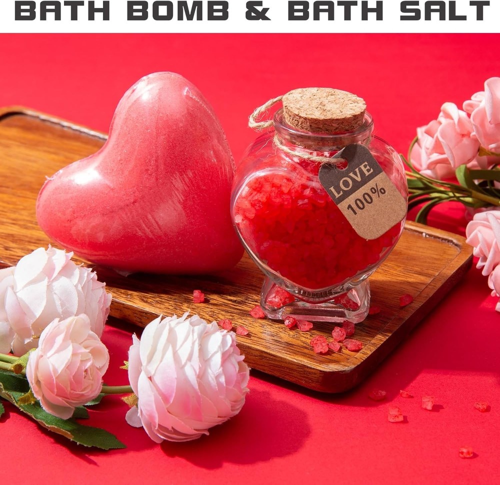About this item 🎁The Beautifully Packaged Gift Box Includes:1 x 12 oz Insulated stainless steel tumbler ,1 x Mirror ,1 x Bath sea salt ,1 x Love Heart Wood Pieces ,1 x Gift box,1 x Greeting card, 1 x Heart shaped Bath bomb,A bouquet of dried soap rose. 💐Everlasting LOVE: Rose is a symbol of fine, best wishes, forever love, passionate and romantics. Give your wife, girlfriend, best friend, romantic gift. 👍Natural & Safe Materials:12 oz insulated stainless steel tumbler is made of 304 Grade - 18/8 stainless steel with a BPA free push-seal lid,It will keep hot/cold for up to 3 hours. 💖Bath and Relaxation : Indulge in relaxation with bath essentials like bath salts, and bath bombs from this set. They create an enchanting bathing experience, helping her unwind and enjoy some well-deserved self-care. 🎁 Cute Love Gifts: Enchanting Love gift is a cute and unique present for your Wife, girlfriend, sister on special occasions such as Mothers Day,Valentine's Day ,Birthday,Wedding & Engagement or Anniversaries.