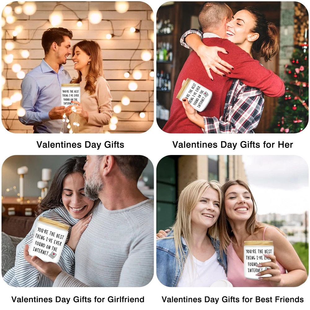 Gifts for Women: Premium quality lavender scented candles make great gifts for women. This funny scented candle features a witty and meaningful phrase to make her smile: You're the best thing I've ever found on the internet! Personalized gifts for women, gifts for her, best friends, girlfriend, wife, couple, fiancee, couples, teacher, coworker, boss, neighbor, classmate, sister,bestie, or anyone else. Warm and humorous candles have a unique way of making her laugh Relaxing Gift for Women: A premium lavender scented candle is great for sleep-promoting and from anxiety, depression, and . A good addition to the bathroom, bedroom, kitchen, living room, office, etc, funny gifts for women in your life to create a stressless relaxed, and comfortable life Funny Gifts for All Occasions: This candle is a best gift for most occasions, birthday gifts for women, Valentines Day gifts for her, new jobs gifts, housewarming gifts, graduation gifts, wedding gifts, Christmas Thanksgiving gifts, anniversary gifts, funny stocking stuffers, secret Santa gift, quarantine gift, holiday gifts. Warm and humorous candle gifts have a unique way of making her laugh, they will love them very much All Natural Scented Candle: This funny scented candle is made of all natural wax, cotton wick, and natural essential oil, which is burning for a long time, sufficiently, and clean, with no black smoke. Helps you fully relax your body, and enjoy the break day, work, reading, meditation, bathing, yoga, and date time Birthday Gifts for Women: This candle is a funny birthday anniversary Christmas unique gifts for best friends, girlfriend, wife, couple, fiancee, couples, teacher, coworker, boss, neighbor, classmate, sister,bestie coworker, employee, boss, buddy, partner, couple, lover, forever friends, separated friends, new friend, old friend or anyone else to show them how much you care about them and tell them how much you love them