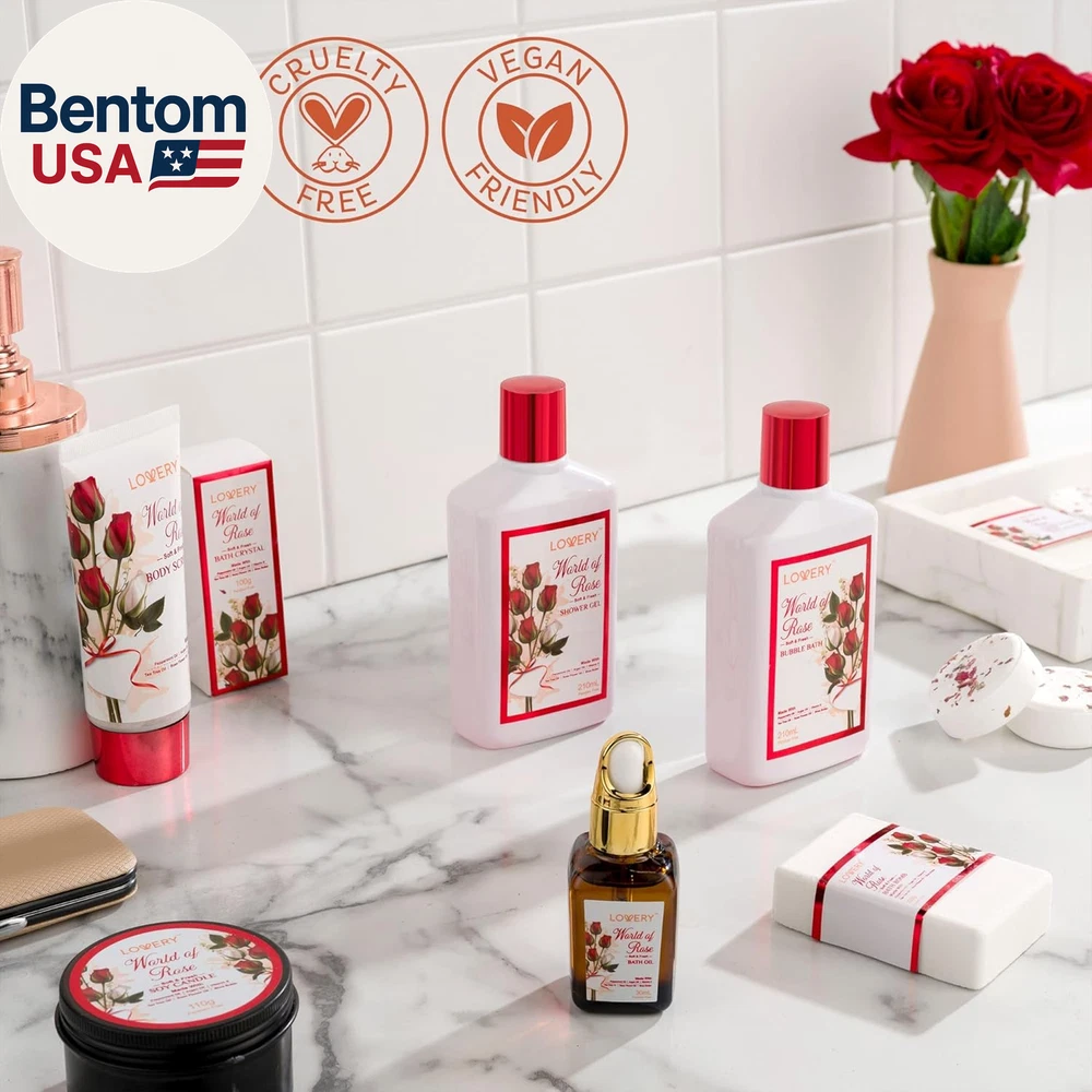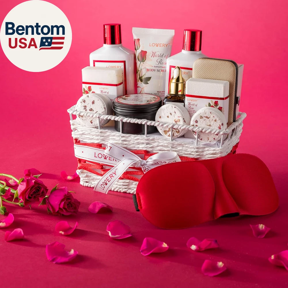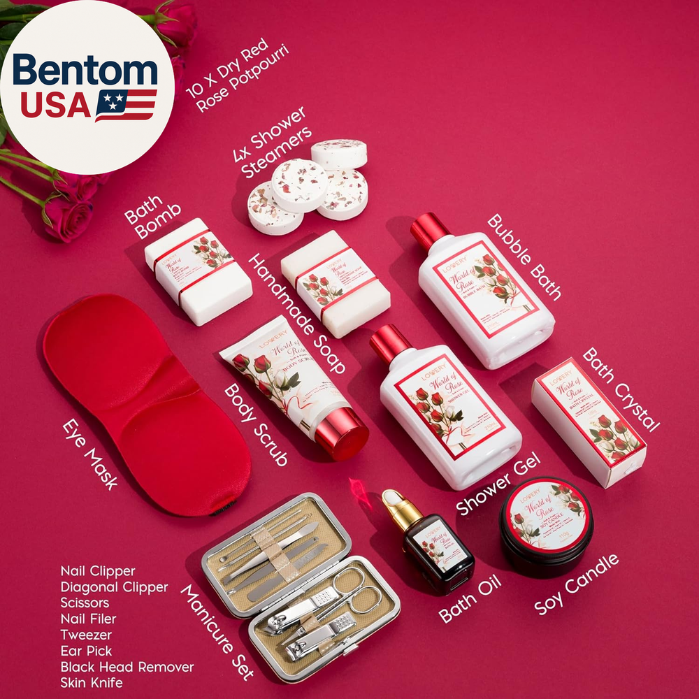 35 PIECE BEAUTY & PERSONAL CARE - Each Gift Basket contains premium Bath and Shower Essentials: 8 Piece Manicure Nail Kit, Shower Gel, Bubble Bath, Body Scrub, Body Oil, Bath Bomb, Handmade Soap, Scented Soy Candle, Bath Crystals, 4 x Shower Steamer Tablet, Eye Mask, Red Rose Potpourri, Plastic Flowers, wrapped in a Handmade Basket. It also has a gift note card for you to personalize it. BEAUTY BATH GIFT SET - Crafted with moisturizing Shea Butter and nourishing Vitamin E, the Red Rose Spa Kit helps you unwind and relax amid a calming aroma as your hair, skin, and body rejoice in the anti-aging effects. This beautiful fragrant flower is the universal symbol of love and exerts a positive soothing effect on mind, body and skin. The delicate wafting aroma of rose petals helps to enjoy. CARE PACKAGE FOR WOMEN: Beautifully packaged and ready to gift with a personalized note tag. Our bath gift basket for Women, Men, Friends, Mom, Wife and Family takes the guesswork out of gifting for Holidays, Christmas, Mother’s Day, Thanksgiving, Valentine’s Day, Birthdays, Anniversaries or any other occasion with a luxurious Bath and Body Spa Kit. EYE MASK, POTPOURRI, NAIL CARE KIT: Sleep is essential for healthy, glowing skin. Complete the relaxing home spa experience with our soft cotton sleep mask and inhale the natural aroma of Red Rose Dry Flowers. Enhance your hands and feet with our Deluxe Manicure & Pedicure Set. 100% SATISFACTION GUARANTEE – Lovery Red Rose Spa Kit is 100% Paraben and Cruely Free. We're sure you'll adore this deluxe home spa gift set - but in case of any order-related issues, feel free to contact us for five-star customer service. We promise to do everything in our power to make it right! Product description Aromatherapy Kit 110g Scented Soy Candle 100g Handmade Soap 100g Bath Bomb 210ml Bubble Bath Relaxation Kit 30ml Red Rose Bath Oil 210ml Shower Gel 100ml Body Scrub Red Rose Potpourri Salon Kit 8 Piece Nail Kit Leather Packaging Manicure & Pedicure Kit Sharp & Clean Edges Spa Kit 100g Bath Crystals 4 x 30g Steamer Tablet Fabric Eye Mask Handmade Basket