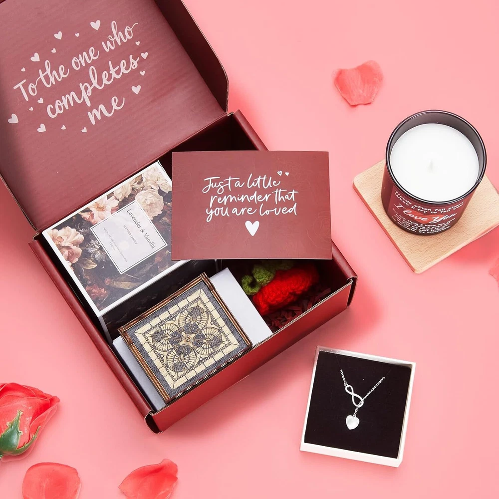 Free eBay listing template designed by dewiso.com Valentines Day Gifts for Her, Romantic Gifts for Girlfriend, Wife, Boyfriend, Him, Husband, Valentine's Gifts for Her, Valentine Gifts Baskets for Women FREE AND FAST SHIPPING! About this item Romantic Valentine's Day Gifts for Her:Surprise your loved one with this thoughtfully curated Valentine's Day gift basket. Featuring a handmade knitted rose, a scented candle adorned with warm, heartfelt words, a timeless wooden music box, an infinity-heart necklace symbolizing eternal love, and a beautifully designed greeting card. This elegant gift set creates the perfect romantic atmosphere to make her feel truly cherished and loved. Ideal for your girlfriend, wife, sister, female friend, or any woman you care about. Unique Valentine's Basket for Her: This Valentine's basket for her combines timeless charm with meaningful details. The soothing aroma of the scented candle, the delicate craftsmanship of the knitted rose, and the heartfelt melody of the music box come together to create an unforgettable Valentine’s experience. Whether it's for your girlfriend, wife, or special someone, this unique gift is a heartfelt expression of your love. Valentine's Gift Set with Meaning: Looking for a Valentines gifts for her that stands out? This set features an infinity-heart necklace that symbolizes endless love and connection, a handcrafted rose that lasts forever, and a beautifully written card to express your deepest feelings. Thoughtful, practical, and deeply romantic, this gift basket is perfect for showing her how much she means to you. Perfect Romantic Gifts for Her: Give her a gift she’ll treasure forever. This romantic gift set is designed to celebrate love in the most meaningful way. From the music box that plays a timeless tune to the luxurious infinity-heart necklace, every item in this basket has been carefully chosen to create lasting memories. It’s not just a gift—it’s a romantic gesture she’ll never forget. Ready-to-Give Valentine's Day Gift Set:No need to worry about gift wrapping! This beautifully packaged Valentine's Day gift set is ready to impress. With premium materials, a romantic design, and heartfelt details, this gift box is perfect for Valentine's Day, anniversary, or any special occasion. This gift set will touch her heart and convey your warmest wishes. Don't forget to leave a message: select "THIS ORDER CONTAINS A GIFT" at checkout and add a personalized gift message. › Product We offer a 30-Day Return Policy on items which you are not completely satisfied with. You have the option for a full-refund or an exchange of the item. No returns are available on items shipped outside of the US . Shipping We offer Free Shipping to the US and ship within 2 business days of payment, usually sooner. We use UPS express shipping. That's why your products are usually delivered within 3 days . Contact We try our very best to make sure every customer is completely satisfied. If there's a problem , message us! We're happy to help. 24/7 live chat available.