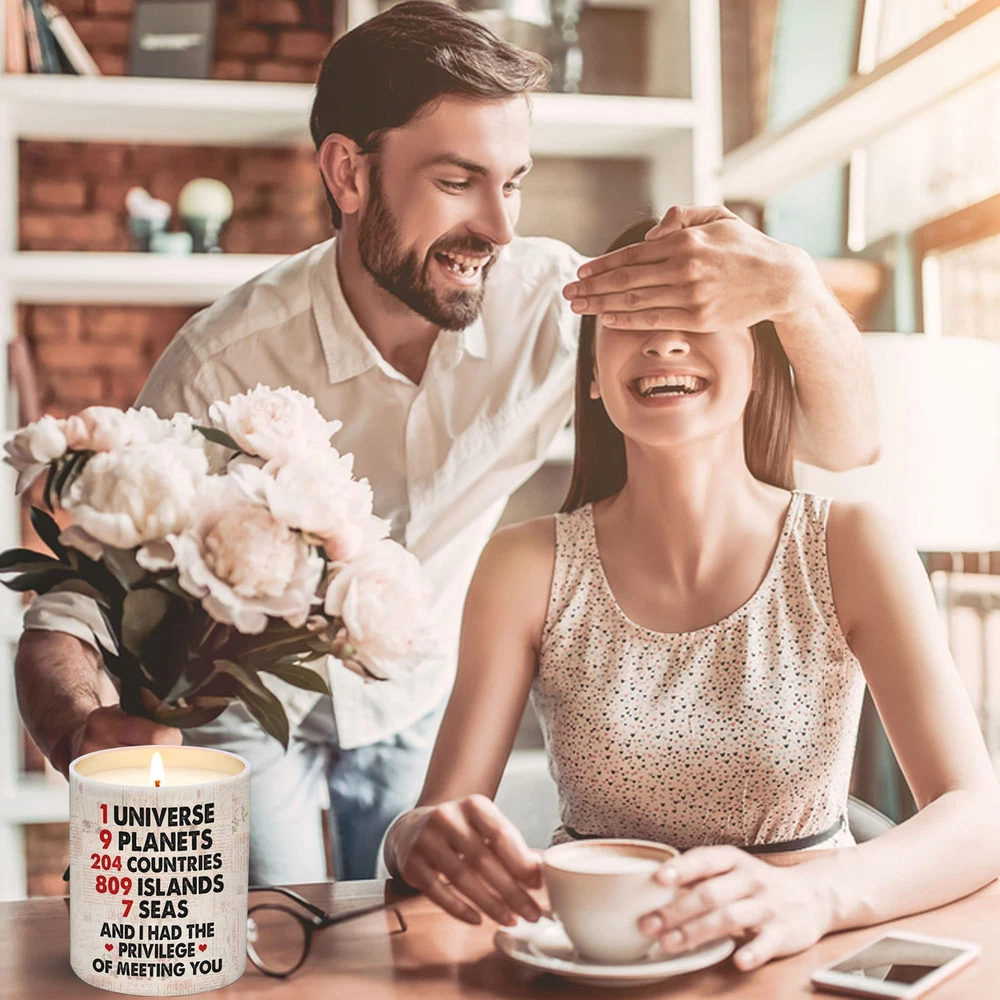 BEST ANNIVERSARY GIFT FOR HER, ANNIVERSARY GIFTS FOR HIM - This is a great meaningful gift ideas for a scented candle with a romantic quote, this candle is the best gift ideas for romantic gifts for her, romantic gifts for him, i love you gifts for her, him BIRTHDAY GIFTS FOR HER, HIM - Our strong scented, natural candles make for the perfect relaxing presents for your partner. Great gifts for your boyfriend, girlfriend, BFF, wife, husband, fiancé, fiancee, best friends, coworker, employee, boss, bro, buddy, boss, partner PERFECT GIFTS FOR ANY HOLIDAYS - Great gifts ideas for birthday, new job, housewarming, graduation, wedding, Valentine's Day, Mother's Day, Thanksgiving, Christmas, anniversary. Melting your partner's heart with the sweet message and aroma of this unique candle READY-TO-GIFT PACKAGING - Our Candle Boxes are beautifully designed with a elegant touch. Avoid the embarrassment of cheap looking gift boxes packed with tacky dollar store items ECO-FRIENDLY And REUSABLE - The candle is handmade with high quality natural soy wax and lemongrass fragrance oils. Our soy wax burns nice and clean and Eco-friendly that perfect for aromatherapy, meditation, yoga, etc. Wax can easily be cleaned out of the jar with hot soapy water and the jar can be reused or recycled