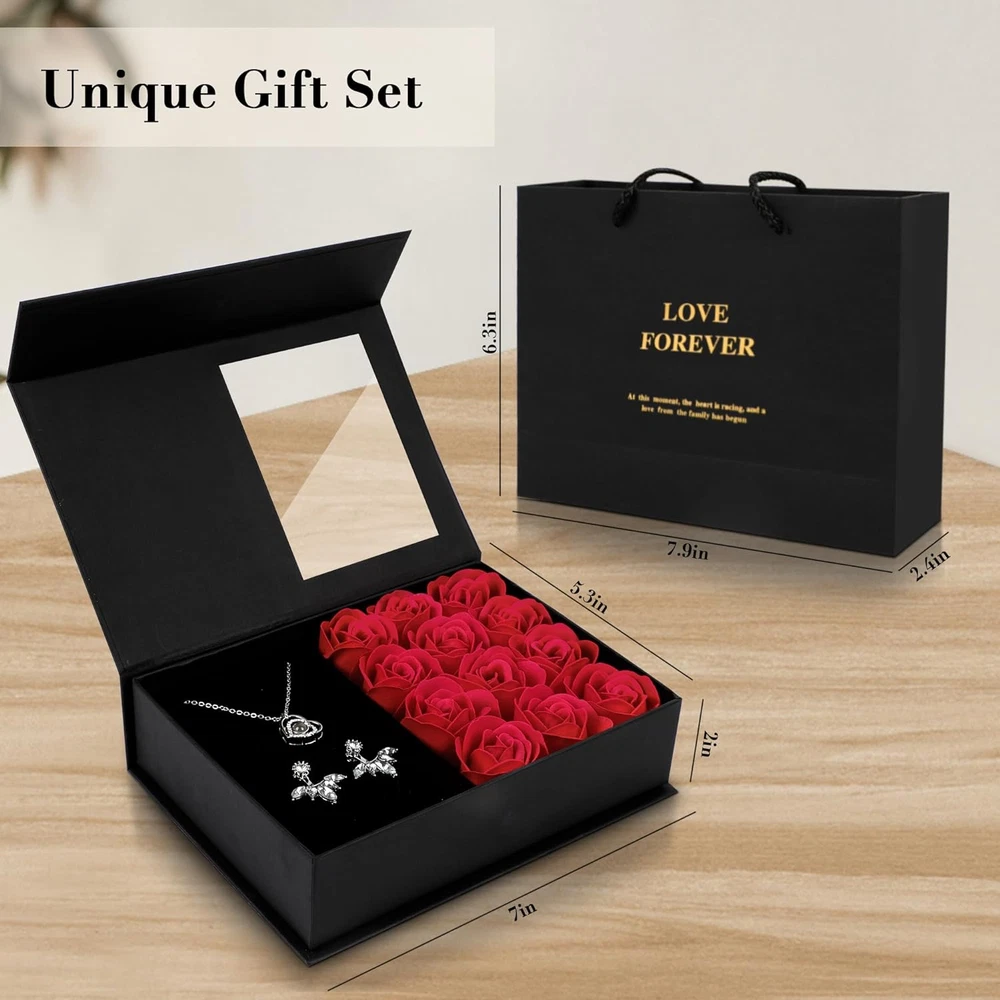 Valentines Day Gifts for Her Women Red Roses Flowers Gift Box with Necklace Specification ;- Exquisite Gift Box: When the necklace gift box is closed, you can see 12 red roses, and when you open the box, you will find a necklace and a pair of earrings, and there are exquisite gold stamping words on the box to better express your love. Jewelry Box: The red roses in the jewelry box are exquisite and lovely, bright in color, and the space next to the roses can store your necklaces, rings, earrings and other jewelry. High Quality: Our love pendant necklaces and earrings are made of high quality materials, embellished with rhinestones, lightweight and comfortable to wear, making them perfect for gifts. Projection Necklace: The love necklace with a bead in the middle, which can display "I love you" in 100 languages through the phone, which is both romantic and can give her a small surprise. Romantic Gift: Rose necklace gift box provides a romantic way to express love on Valentine's Day, anniversary, birthday, Mother's Day and other holidays. shipping ;- US Deliver within 14 Business Days & Worldwide, using Standard shipping The item will be shipped within 1-5 days after payment is cleared. Payment ;- We accept any payment method which provide eBay. Contact us ;- We can be contacted at any time through eBay messages if you have any questions, comments or product requests. We will respond to you within 12 hours and do our best to help you out! We encourage our customers to contact us with any questions or concerns! We'd like to be sure you are completely satisfied with your purchase thank you.......
