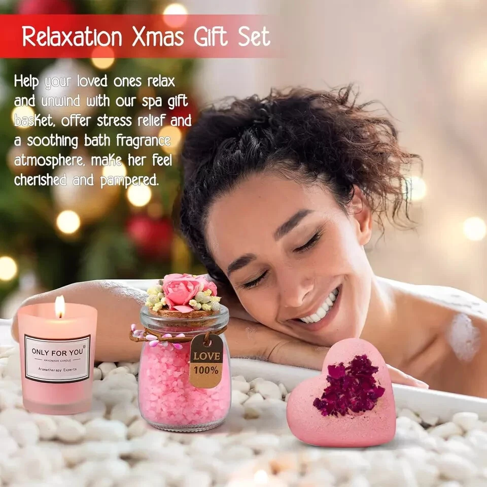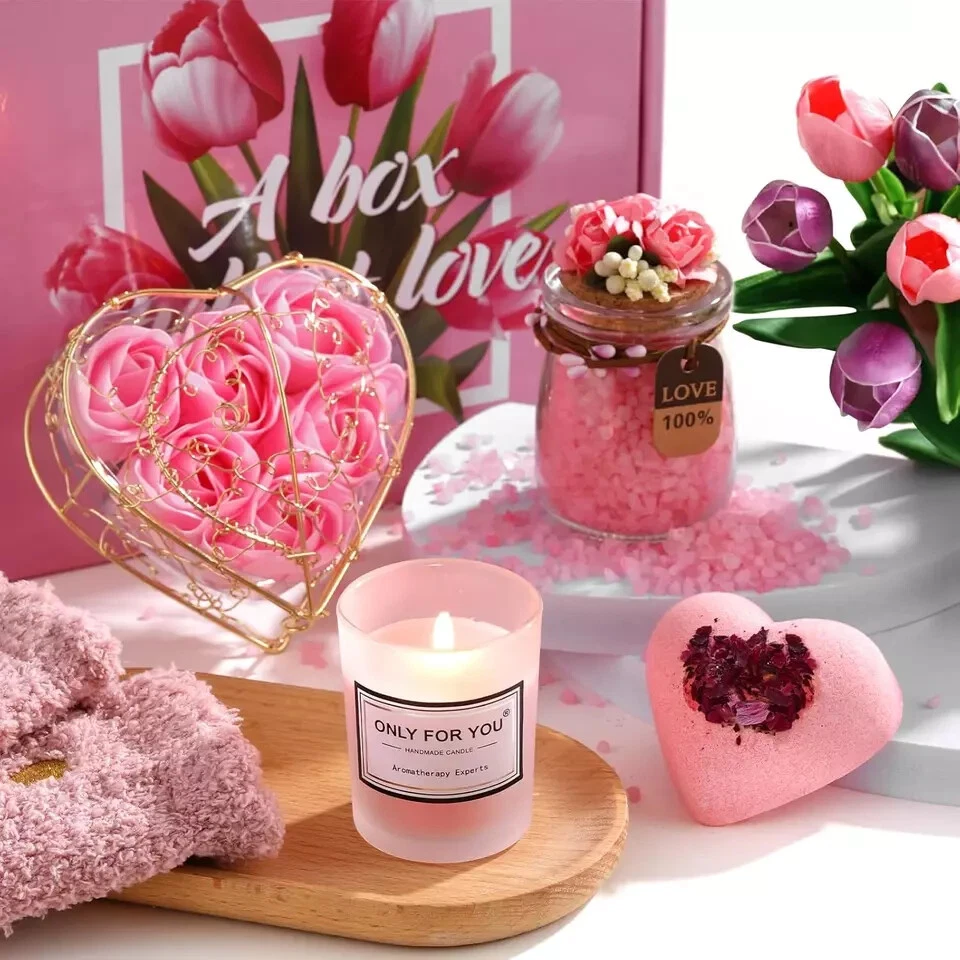 đăHeartfelt Valentines Day Gift for Heră The meticulously curated gift boxes are devised to forge a memorable and delightful day, bringing a beaming smile. Ideal for demonstrating your abundance of love and appreciation. Excellent gifts for wife, mom, grandma, girlfriend, daughter, sisters, friends, teachers, colleagues, and more. Great womens gifts for Valentine, Valentines Day gifts for women wife girlfriend đăStress Relief Spa Gift SetăTreat your loved ones to the ultimate relaxation experience with our spa gifts for women. Immerse her in the serene aromas of sea salt, bath bomb, and soy wax candle. Crafted from natural ingredients, including 100% soy wax and essential oils, allow her to indulge in a rejuvenating spa retreat that soothes the senses and revitalizes the spirit đăRadiate Love and Warmth Valentine Gift BoxăThe premium 16oz vacuum-insulated coffee cup is crafted from 18/8 food-grade stainless steel, ensuring her favorite beverage maintains the ideal temperature. Paired with soft fuzzy socks and adorned with a heart-shaped box of preserved rosesâan expression of everlasting love đăGifts for Women on Any OccasionăMake her day brighter and unforgettable! The gift box labeled "A box full of love,", the coffee mug is embellished with the message "SOMETIMES YOU FORGET YOU'RE AWESOME", showing love, thoughtfulness and a warm reminder to inspire her. Great gift baskets for women for any occasions on Valentine, Christmas, birthday, Mothers Day, thinking of you, get well, thank you, I love you, anniversary, retirement, Thanksgiving, and more đčăCharming Scented Roses Soap BoxăIndulge in the delicate charm of our Scented Roses Box! Crafted in the likeness of a real rose and nestled within a charming heart-shaped gift box, it's a beautiful decoration to add a touch of romance to any room without the concern of wilting. Paired with a greeting card that serves as a heartfelt conduit for conveying sentiments of love and joy đăConvey Happiness and AffectionăEach item is carefully selected to delight, including a pink gift baskets, 16oz insulated coffee mug, fragrant soy candle, preserved roses in a heart-shaped gift box, scented sea salt, scented bath bomb, snug fuzzy socks, gift card. Valentines Day gifts for her, birthday gifts for women, Mothers Day gifts, get well gifts for women, thank you gift, I love you gift, anniversary gift, retirement gifts