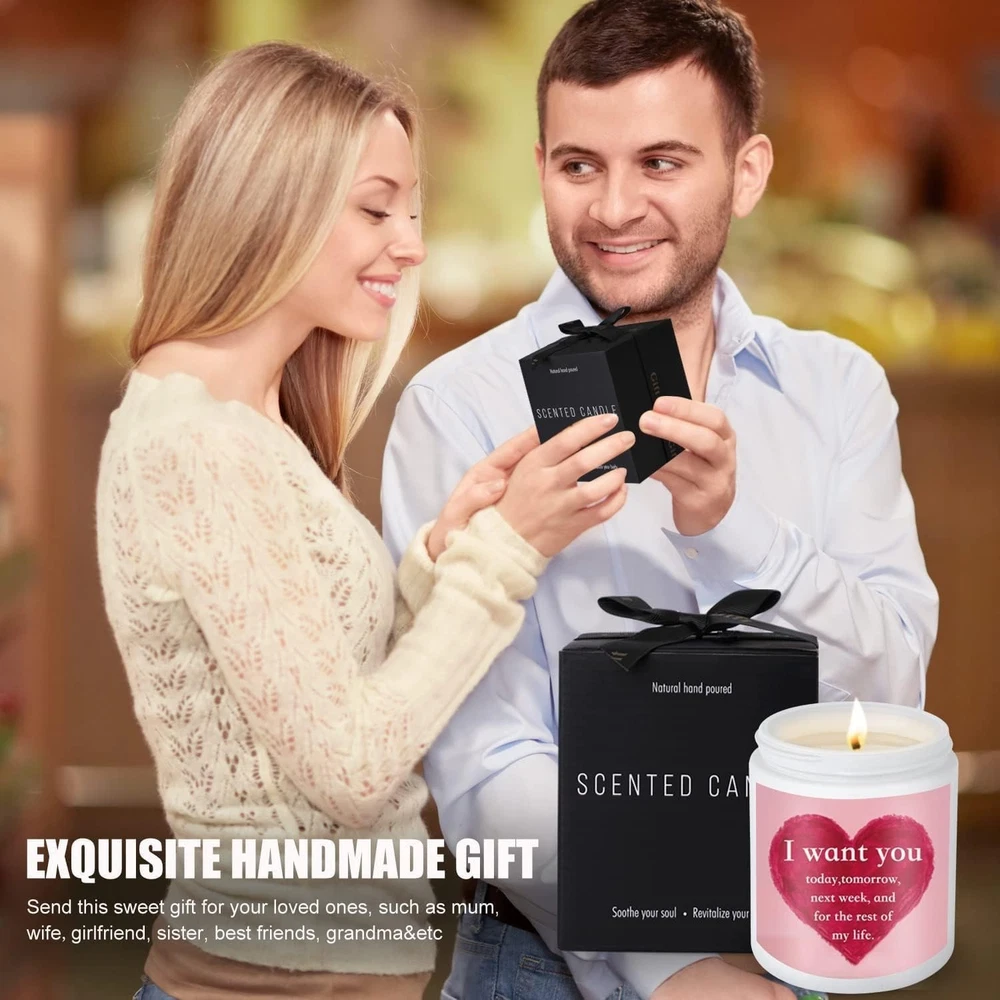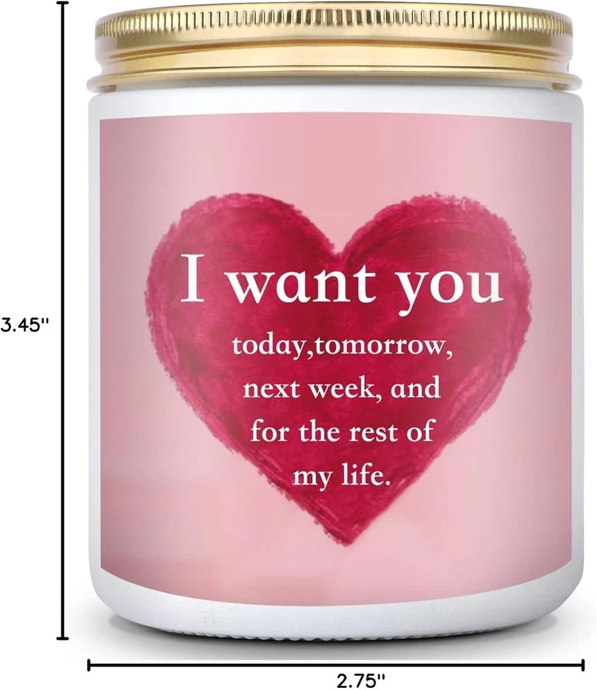 About this item: Color Brown.I Want you,Black. Mother Product Dimensions 3.45"W x 2.75"H Item Weight 75 Grams Number of Items 1 Scent Lavender Are Batteries Included No Indoor/Outdoor Usage Indoor Specific Uses For Product Scented,Wedding Shape Round đă Romantic Valentines Day Gifts for Her ă Great valentines day gifts for her, gifts for wife, girlfriend, gifts for her, girlfriend, Best friends, BFF, wife, fiance, fiancee, sister,couple gifts, dating, wedding gifts, thinking of you gifts, mum gifts,i love you gifts ,just because gifts? And anyone else to show them how much you care about them and how special and important they are to you! Hidden surprising message, delicate candles and beautiful boxes will make them giggle& shine! đ·ă Unique Birthday Gifts for Wife, Girlfriendă Its an amazing birthday gift for her and will make her looks more stunning than ever! Classic jar scented candles with touching saying make the candle be the best birthday gifts for women, best friend birthday gifts, Gifts for Mom from daughter,adorable birthday gifts for women, mum, her, girlfriend, wife, boyfriend, husband, lover, sister, daughter, aunt, fiance, niece, grandma, colleague, mother in law.If this isnât the BEST GIFT BOX sheâs ever received, itâs on us! đ ăBest Anniversay Gifts for Her, Couple ăThe funny love couple gifts with an humors and sentimental saying, make it be a really great and unique anniversary gifts for her, wife, girlfriend, fiancĂ©e fiance ,couple, great gifts for her, gifts for him, fun anniversary gifts, valentineâs day gifts for him, her, girlfriend, boyfriend, couple, long distance relationship gifts.You can bet anyone would be happy receiving this candle. đ ă Perfect Christmas Gifts for Womenă -Personalized romantic gifts are perfect for giving to women on various occasions - Perfect gifts for best friends birthday, anniversary gits for her, him, Valentines Day Gifts for her,gifts for girlfriend, gifts for mother's day, relaxing gifts for women, Christmas gifts, Thanksgiving Day gifts, Easter gifts, funny stocking stuffer, secret Santa gift, housewarming gifts, engagement gifts for couple,wedding gifts,date gifts. đ· ăVEGAN &EARTH FRIENDLY ă-The soy scented candle for its reduced soot while burning. The lavender scent is nice without being overpowering and the presentation gift box with a bow is a very nice additional touch that makes this a great gift. You can bet anyone would be happy receiving this candle.