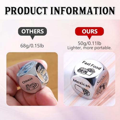 Return Policy Fast Delivery Trusted seller Valentines Day Gifts for Him Her Couple Date Night Gift for Boyfriend Girlfriend Food Decider 11th Anniversary Steel Gifts Husband Wife Valentines Basket Stuffers Wedding Birthday Gift for Women Men Product Description ❤Valentines Day Gifts for him her: This Valentine's, end gift stress with the Food Choice Dice! Roll it to decide w to eat, what to cook. It's more than a dice—it's a playful companion for food-loving couples, making every meal a shared surprise. Valentines Day Gifts for her, Valentines Day Gifts for him, Valentines Day Gifts for boyfriend, Valentines Day Gifts for girlfriend, Valentines Day Gifts for couples, Valentines Day Gifts for wife, Valentines Day Gifts for husband! ❤Valentines Day Gifts for Women Men--Can't decide on a Valentine's gift? Let our Food Choice Dice make the decision deliciously fun! A simple roll picks your next food adventure—from takeout to homemade dinners. It's a unique, interactive gift that turns ordinary nights into romantic culinary experiences! Perfect valentines present for him, valentine gift for him, valentine for him gift! Valentines Day Gifts for sister, Valentines Day Gifts for friend, Valentines Day Gifts for mom! ❤Funny Date Night Gifts for Couples--Do you often have trouble deciding what to eat with your partner on your date night? Roll this food decision dice and let it solve your troubles! Funny valentines day gifts for boyfriend girlfriend husband wife sweetheart, wedding gifts for couple, anniversary gifts for her him, engagement gifts for couples, birthday gifts for girlfriend boyfriend, couple gifts, boyfriend gifts, girlfriend gifts, bridal shower gifts. Just roll the dice and enjoy your night! ❤Anniversary Gifts for Him Her--Racking your brain and not knowing what to eat tonight, throwing the problem of the century to your significant other? No! Just use this funny food decision dice! Perfect wedding anniversary gifts for couple, 1 year anniversary gifts for boyfriend girlfriend, anniversary gifts for husband wife, fathers day gifts for husband boyfriend, fathers day gifts from wife girlfriend, sweetest day gifts for her him fiance fiancee groom bride sweetheart soulmate partner. ❤11 Year Anniversary Gifts for women men--Funny food decision dice to solve your daily problems--What to Eat Today? And steel represents the strength and resilience of a marriage, it is a traditional anniversary gift, which symbolizes your eleven years of marriage strong as steel. This cute stainless steel food dice makes best 11 year anniversary gifts for him her to celebrate your 11th wedding anniversary. Funny 11th anniversary gifts for him her, steel anniversary gifts for 11th anniversary. Shipping Returns Payment Shipping Shipping is FREE to all addresses other than APO/PO boxes in the lower 48 states. All our stock ships from US-based warehouses. Shipped via USPS or UPS (depending on location and package weight) Unless stated otherwise, all orders will ship within 24-72 hours of your payment being processed. Check our feedback to see the great reviews of FAST shipping we offer. Returns Seller does not accept returns Payment We currently accept payment via eBay managed payments only. Once payment is cleared, we will dispatch your shipment within 1-3 business days. Please refer to the "Shipping" tab for more information regarding shipping speed to your destination.