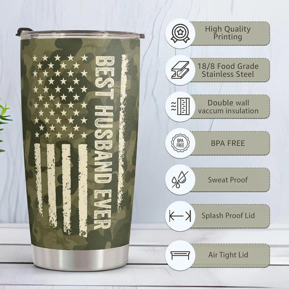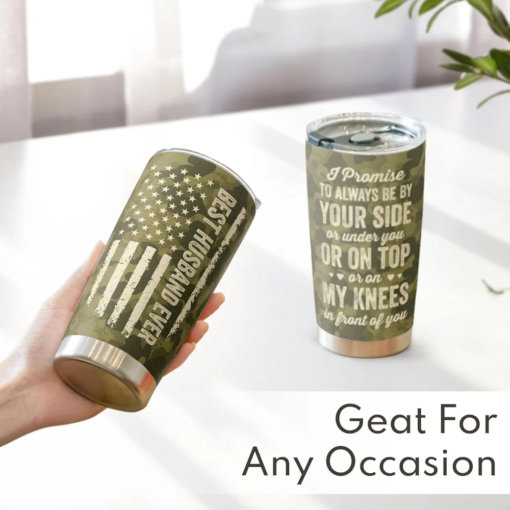 π BEAUTIFUL TUMBLER π For a gift feels extra thoughtful and special because it can only come from you. π UNIQUE GIFT FOR THE LOVE OF YOUR LIFE π Our high-quality Tumbler with heart-touching design will certainly be the perfect gift to the man of your life, who loves you, cherishes and supports you in every situation. Presenting this gift to your husband as a sincere thanks for coming into your life and making your everyday worthwhile, every moment wonderful. In this way, you can express how you're grateful for the love and happiness he brings to your life. π TEMPERATURE RETENTION - Featuring a leakproof cap and made from food-grade stainless steel and BPA-free components, our vacuum insulated flask can keep your beverages hot or cold, at just the right temperature for up to 9 hours, depending on the outside temperature. π PREMIUM MATERIAL - The cup body is made from 18/8 stainless steel, so this tumbler is durable, unbreakable, rust-resistant, and doesn't transfer the flavor of your drinks. The BPA-free clear lid that seals the cup tightly keeps spills under control and allows you to see inside. π FITS IN MOST CUP HOLDERS - Lightweight, compact, fits most car cup holders. Toss your bottle in your bag without worrying about spills, drips, or condensation. Product Description PERFECT VALENTINES DAY GIFTS BEAUTIFUL GIFT PACKAGING VACUUMED INSULATED TUMBLER