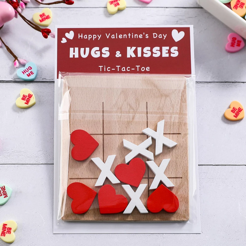 This Valentine's Day set is a fantastic gift for kids! The wooden tic-tac-toe games are sturdy and well-made, offering a fun, tactile experience. The themed cards are adorable, with space for personalization, making them perfect for sharing with friends. Everything comes neatly packed in clear bags—great for classroom exchanges or party favors. A creative and thoughtful way to celebrate!