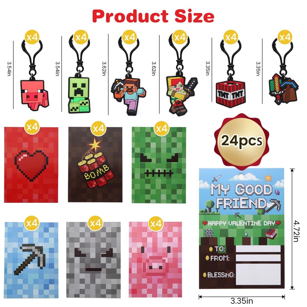 💖 The package includes 24 cards, 24 cartoon keychains,There are 5 different styles that can be used for different holiday greeting cards and invitation cards and a large quantity that can be used to hang backpacks, zipper pendants, making it the perfect gift for children on Valentine's Day 💖【Perfect Gifts】Perfect for kids classroom exchanges, preschool or elementary school parties, or any Valentine's event, Kids will love it! 💖【Safe and Durable】Our toys are made of high quality and environmentally friendly child-friendly materials that are safe, non-toxic, odorless and washable. When your toys get dirty, you can always wash them. These products are very durable and can be used over and over again. 💖 【 Perfect Valentine's Card Set for Children's Classroom 】 Send your favorite cartoon image gift, which will bring more fun to classroom Valentine's card communication! Children's Valentine's Day cards are also very suitable for creating opportunities for social skills and experiencing a hands-on atmosphere. 💖【Customer Service】: our duty to let you enjoy the high quality purchasing service experience. We want to provide you with quality products for a lasting experience. If you are not 102% satisfied, please feel free to contact us.