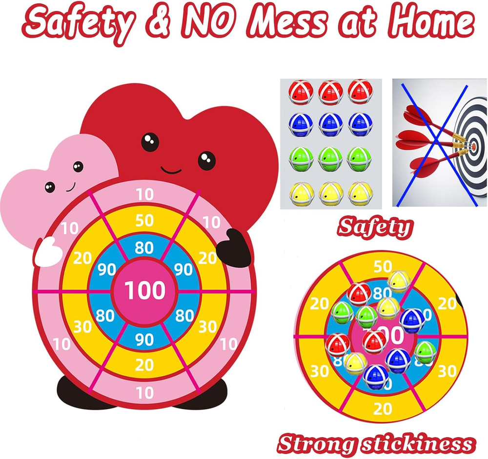 【Valentines Day Gifts for Kids】30in Valentines dartboard (with hook), made of high quality soft fabric, durable, and comes with 12 plastic sticky balls with strong stickiness, can be firmly attached to the dart board. Valentines toys dart board gifts for kids 4 5 6 7 8 9 10 Year Old, indoor or outdoor game for kids age 3-10. 【Valentines Decorations】30” Valentines decor for your Valentines party decoration supplies. Valentines Gifts can be hang on wall or indoor outdoor to create a scene during Valentines, wow your guests with this interesting Valentines party favor! 【Practice Target/mathematics】Valentines dart board game is safer than traditional darts, and children can play unlimited. It is a very good tossing toy for kids to improve their hand and eye coordination, playing with friends can enhance friendship and develop the ability to coordinate. Fun for toddlers to practice aiming, practice math by adding scores. Perfect Valentines gifts toy exchange for boys girls. 【Valentines Family Party Games】The Valentines dartboard toy is a good parent-child interactive game which accompanies children to grow up and bring fun for kids. Dart board game is also a good helper for stress relief and active atmosphere, balls have 4 colors which support multiplayer competition, suitable for any age, enrich life, draw closer to each other. Great fun party game!! 【Great Gift Idea】If you are confused about the upcoming Valentines or your kid's birthday, this dartboard is best ideal Valentines gifts for 3 4 5 6 7 8 9 10 11 12 years old boys and girls. Product Description
